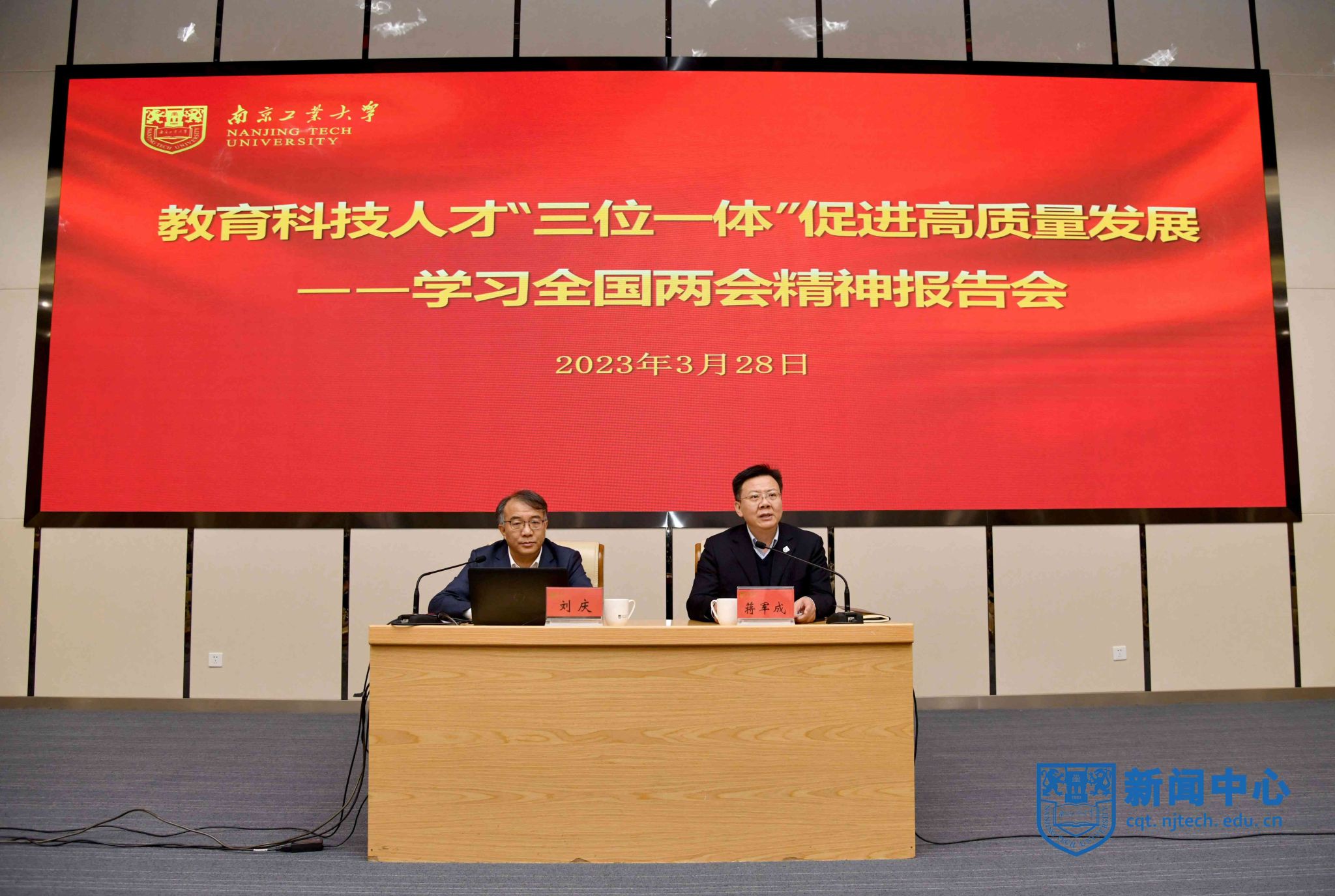 蒋校长强调,全校师生要深入学习贯彻习近平总书记重要讲话精神和全国两会精神,更加紧密地团结在以习近平同志为核心的党中央周围,深刻领悟“两个确立”的决定性意义,增强“四个意识”、坚定“四个自信”、做到“两个维护”。要深入贯彻落实党中央重大决策部署,深刻领会教育、科技、人才是全面建设社会主义现代化国家的基础性、战略性支撑,在奋力谱写特色鲜明国内一流国际知名创业型大学建设新征程上踔厉奋发、勇毅前行,为实现高水平科技自立自强、推进中国式现代化江苏新实践贡献南工大力量。