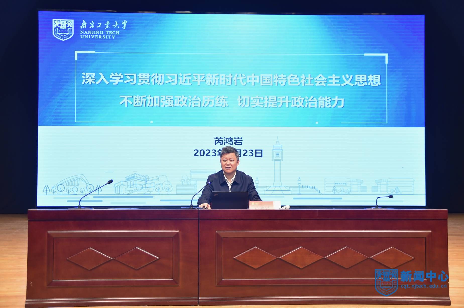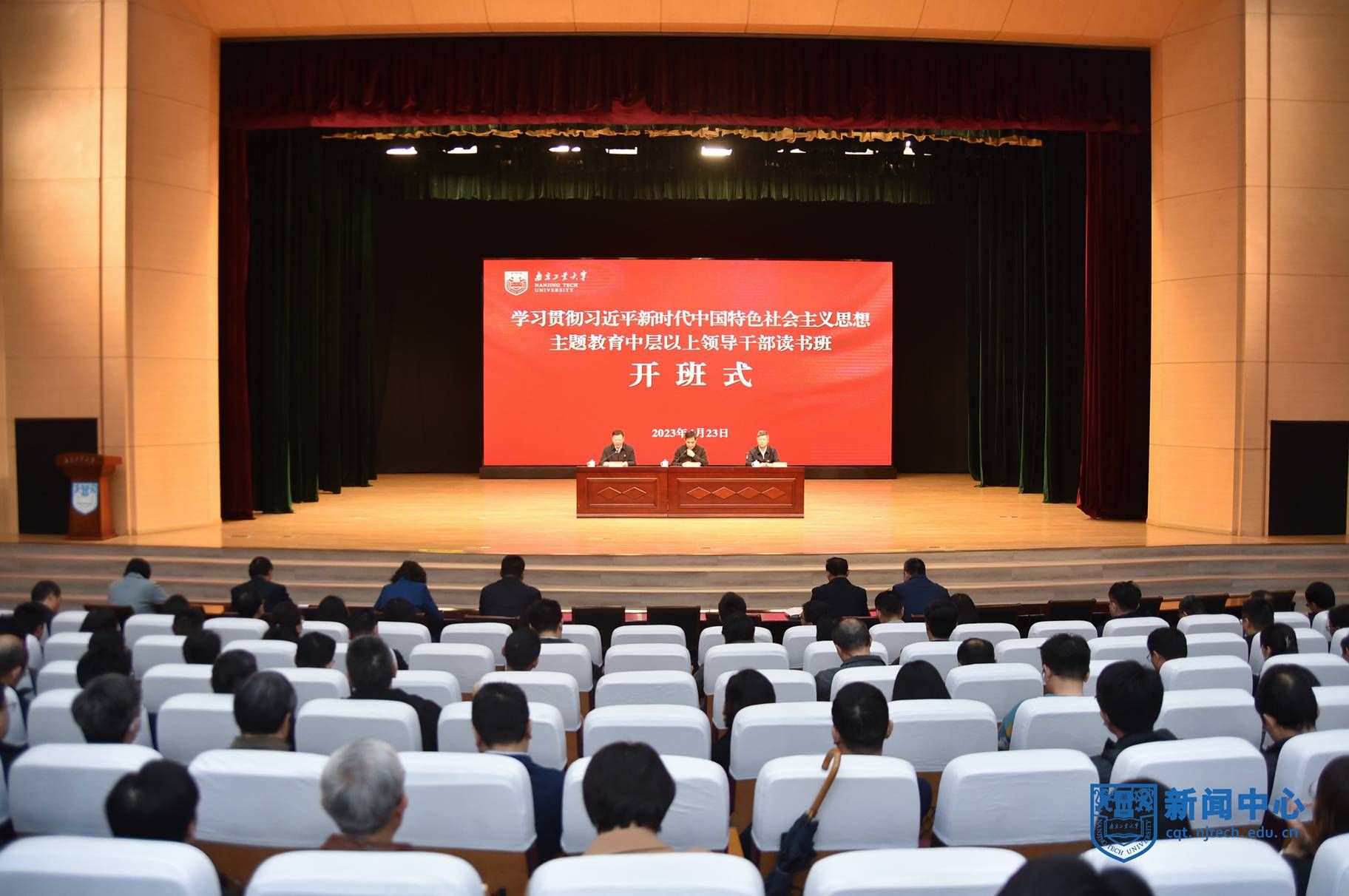 4月23日上午,根据主题教育总体安排,学校举行学习贯彻习近平新时代中国特色社会主义思想主题教育读书班开班式暨首场报告会。校长、主题教育领导小组副组长蒋军成作开班动员。校党委书记、主题教育领导小组组长芮鸿岩作首场报告。省委主题教育第十八巡回指导组组长、南京师范大学原党委副书记、校长陈国祥到会指导。