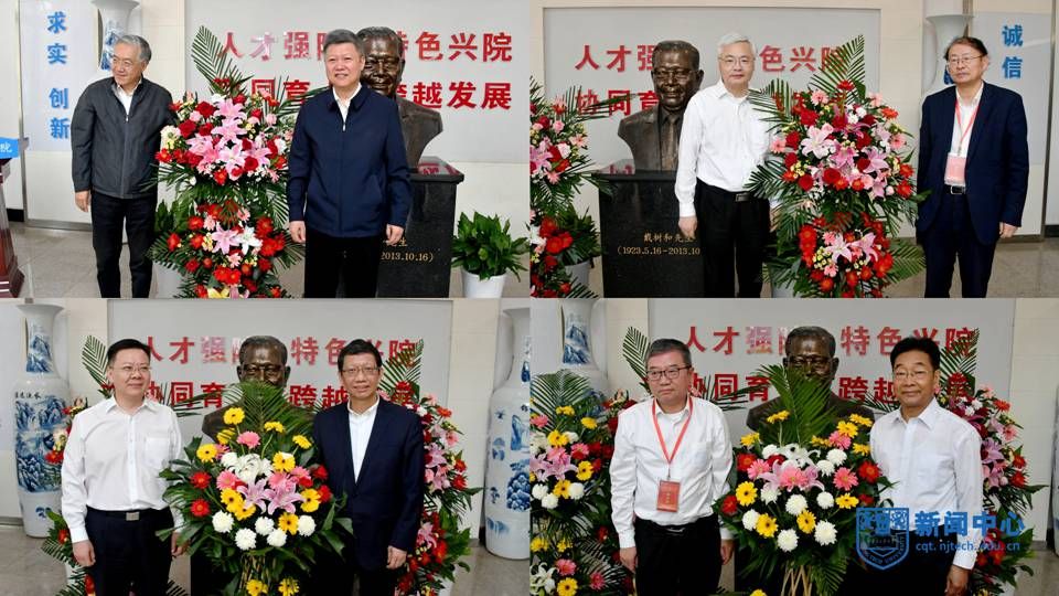 上午八点半,在崇德E栋一楼大厅,与会嘉宾和领导拜谒戴树和先生塑像并敬献花篮。