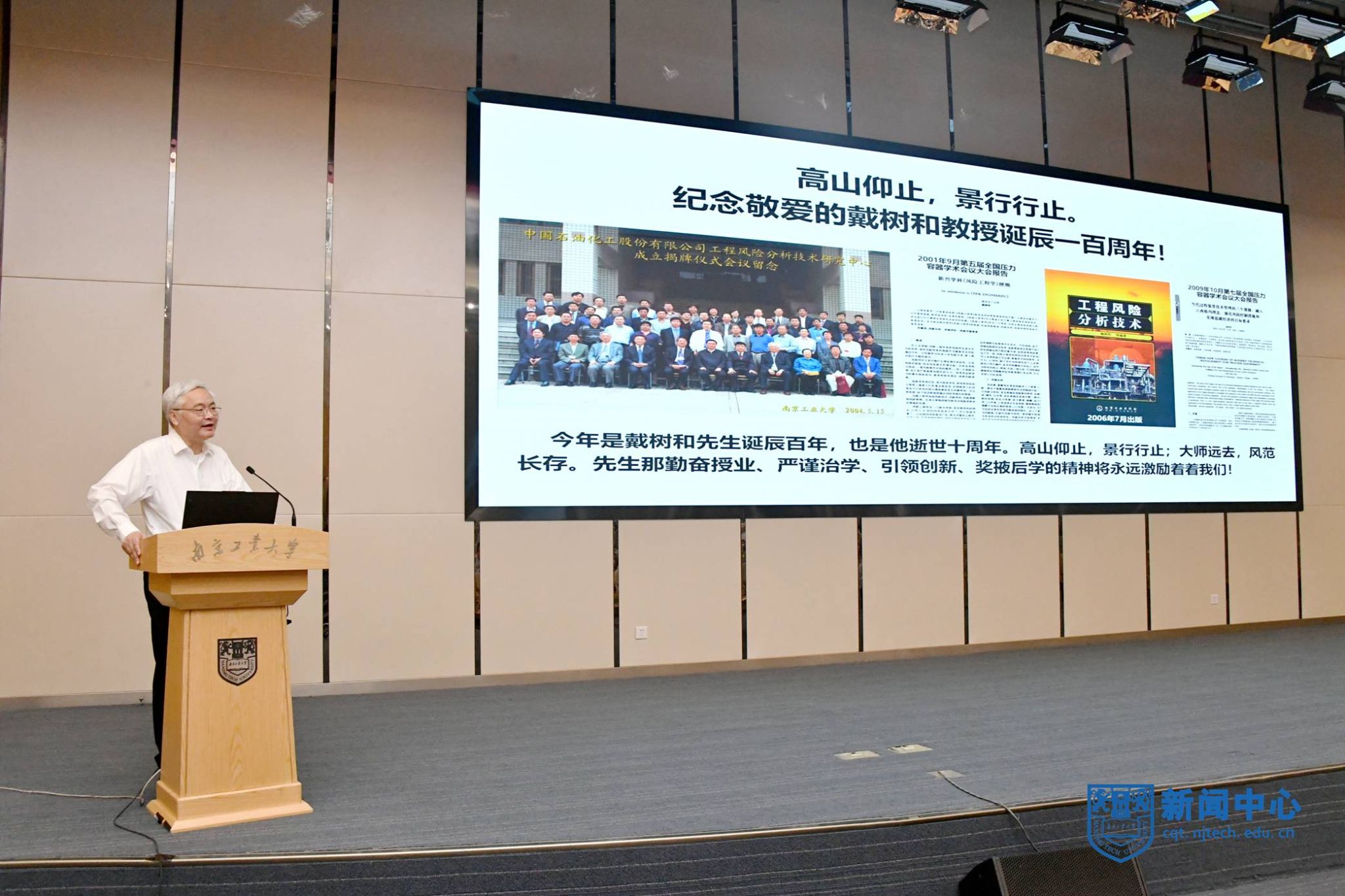 上午九点,报告会开幕式在弘毅楼五楼报告厅举行。蒋军成校长代表学校致辞,对各位院士、领导、专家长期以来对学校的关心和支持表示感谢,并指出我们今天纪念戴树和先生,就是要学习先生爱国奉献的宏大志向、潜心育人的崇高品格和矢志科研的创新精神。