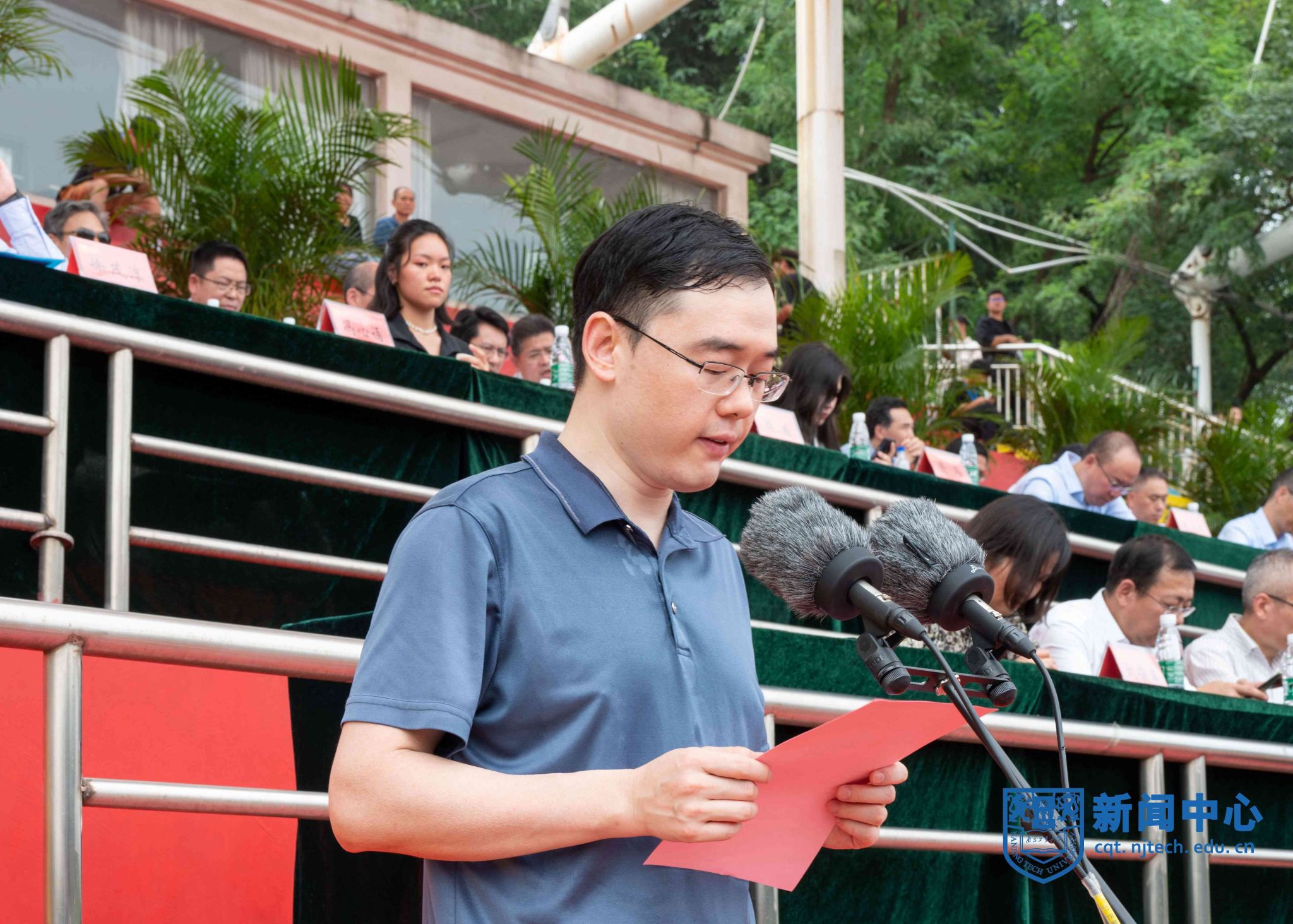 蒋军成以“上好三门‘必修课’ 做新时代奋斗者”为题讲话。他对全体新同学表示热烈欢迎,期待作为党的二十大召开后迈入大学校园的第一批新生,翻开时代的“教科书”,拿起青春的“记号笔”,用心上好三门“必修课”。一是上好“政治课”,坚定理想信念,做人生有志的奋进者。希望同学们以时钧先生为榜样,坚定理想信念,深刻认识中华民族伟大复兴历史进程中的新使命,坚定不移听党话、跟党走,立志做有理想、敢担当、能吃苦、肯奋斗的新时代好青年。二是上好“专业课”,锤炼过硬本领,做青春有为的践行者。希望同学们珍惜韶华,努力学习掌握知识,使自己的思维逻辑、眼界视野、思想观念、学识水平跟上越来越快的时代步伐。既要勤学、更要善学,多思多想、多学多问、多走多看,练就真本领、增长真才干。三是上好“实践课”,主动担当作为,做强国有我的追梦者。希望同学们积极融入教育强国、科技强国、人才强国的建设浪潮,以创新的理念、创新的方法、创新的实践,将所学所长转化成为国家、为社会、为人民服务的行动,努力成长为学识渊博、素质全面、甘于奉献的新时代强国青年。最后,蒋军成勉励全体新生厚植“丹心从来系家国”的情怀、赓续“书山有路勤为径”的拼搏、涵养“不破楼兰终不还”的气概,在青春的赛道上奋力奔跑、“C位”出道。