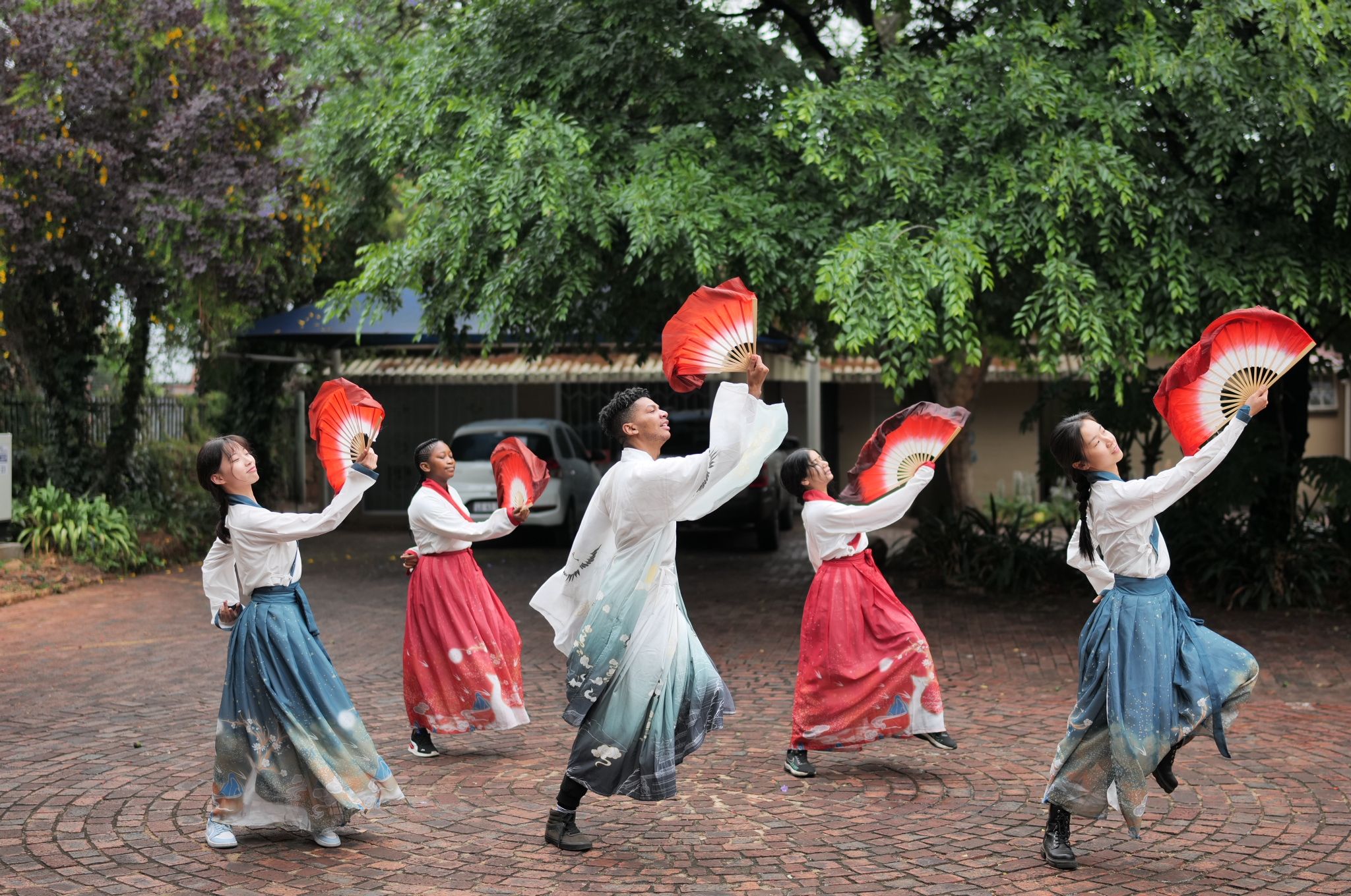 考察期间,约堡孔院中方院长李宝生汇报了米兰milan官方网站实施国际化战略,助力“一带一路”建设,促进中南文化交流,推进科技孔院建设的情况,孔院师生带来了精彩的中国扇子舞《骁》、合唱《万疆》、《茉莉花》等,以及太极、棍术、醉拳等中国功夫表演。