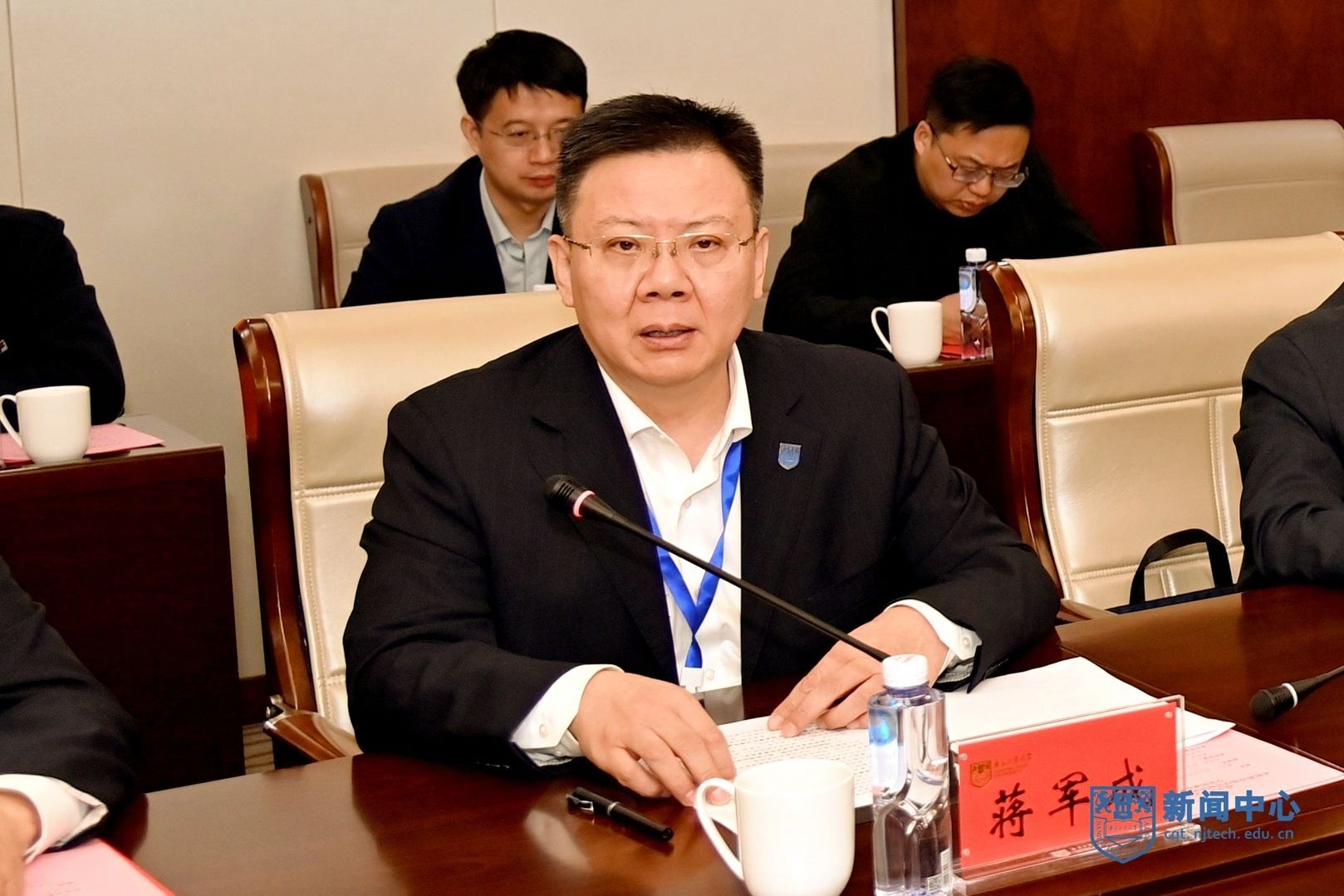 校长蒋军成在评估说明会上发言