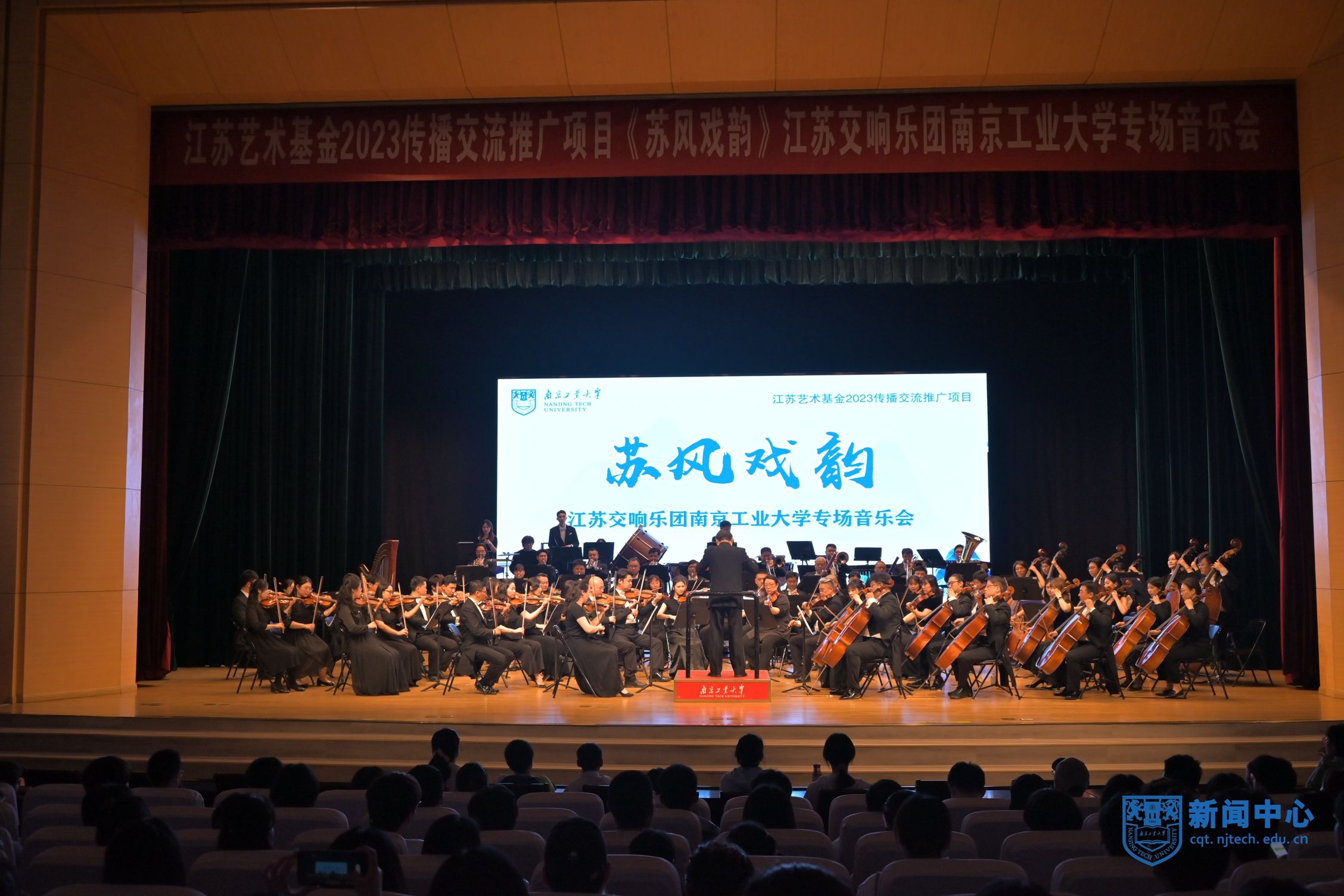 5月14日晚,江苏艺术基金2023传播推广项目江苏省交响乐团大型原创戏曲交响音乐会《苏风戏韵》在米兰博雅堂专场演出,全校师生近千人观看演出。