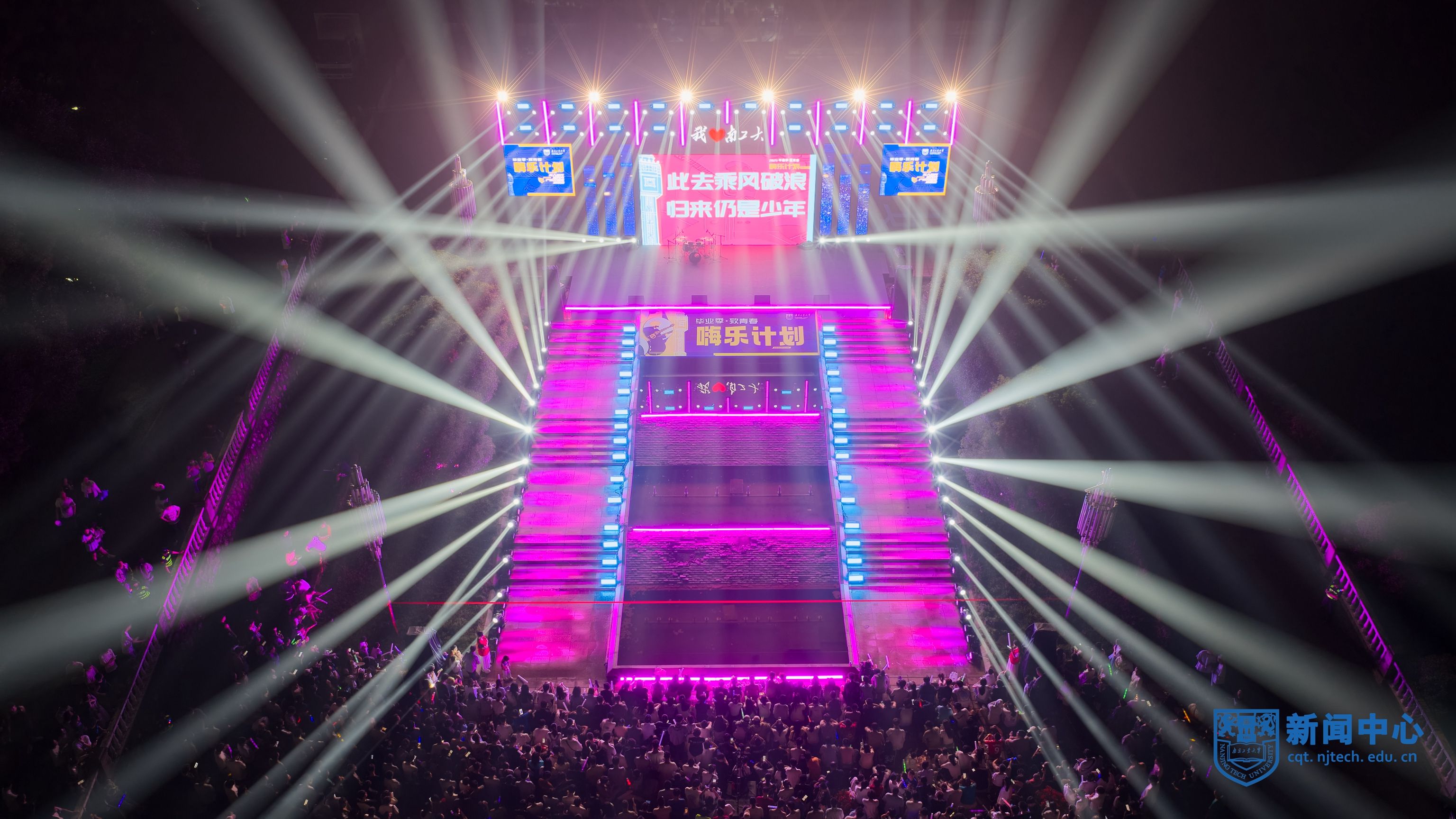 活动在天宝阁平台广场举办。此次创新采用激光秀、灯光秀、无人机表演结合的方式,突出科技感与未来感,让科技光影为百年学府再次注入年轻的动力,诠释着代代南工大人的传承与突破。