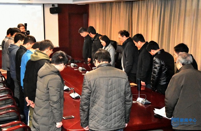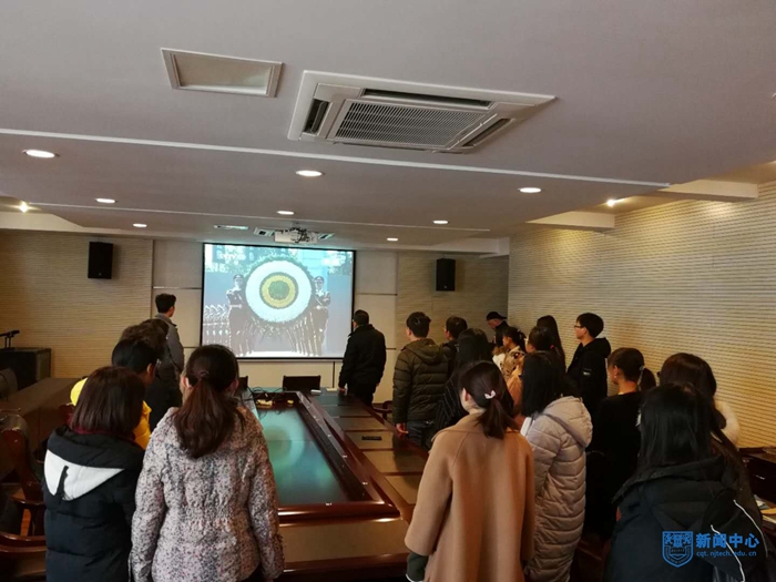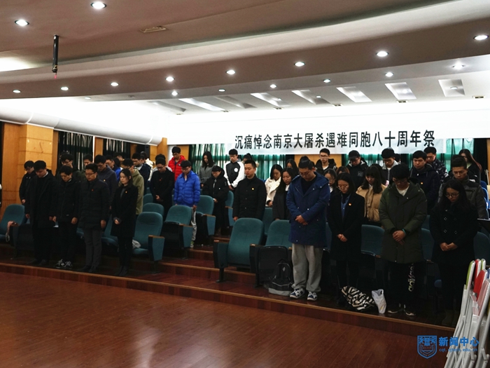 校领导和学生代表为南京大屠杀遇难同胞默哀