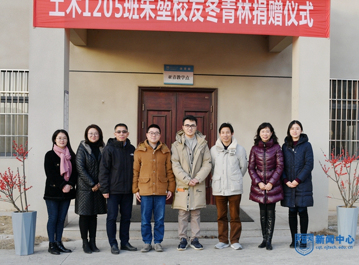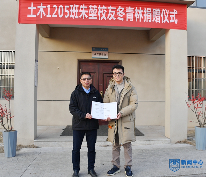 捐赠仪式上,熊中宏书记介绍了朱堃校友的相关情况;万永敏处长代表学校接受捐赠;丁贤副书记向校友颁发了捐赠证书。朱堃校友和凌红副处长共同为冬青林揭牌。