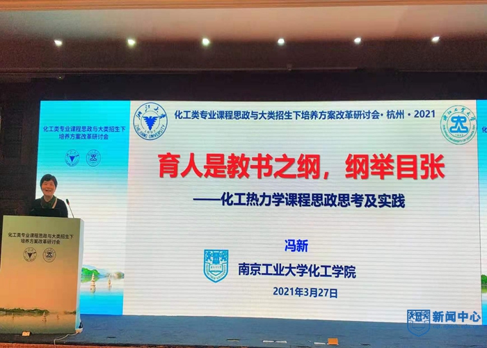 近日,全国“化工类专业课程思政与大类招生下培养方案改革研讨会”在杭州成功举办,本次研讨会由教育部高等学校化工类专业教学指导委员会、浙江大学和浙江工业大学举办,来自全国80余所高校的近300位专家、学者参加会议。米兰国家首批一流课程负责人、“感动江苏教育人物—2018最美高校教师”冯新教授作题为《育人是教书之纲,纲举目张——化工热力学课程思政思考及实践》的大会报告。