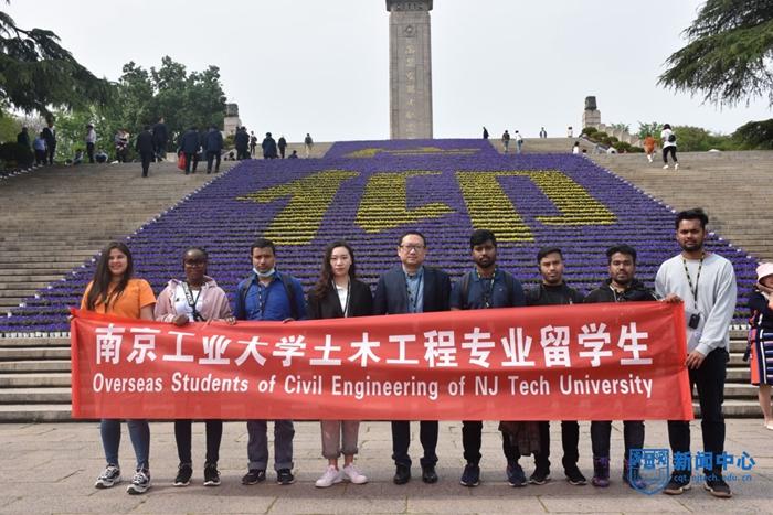 土木学院院长助理、留学生土木工程专业负责人岳健广、辅导员葛芷萱及部分老师代表带领土木工程专业在校留学生。
