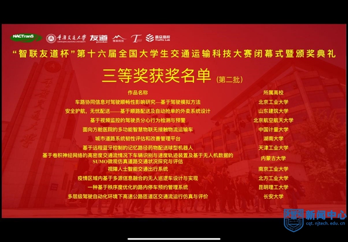 交通运输工程学院学子在第十六届全国大学生交通运输科技大赛中获佳绩