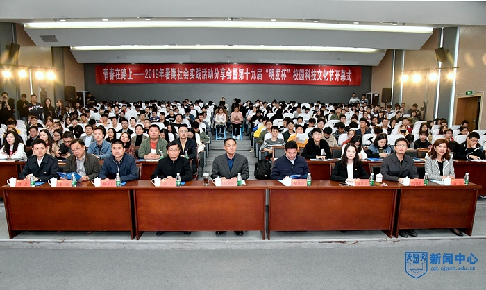 10月29日晚,“青春在路上”2019年暑期社会实践分享会暨第十九届“明发杯”校园科技文化节开幕式在图书馆一楼报告厅举办。校党委常委、副校长吴胜红,相关职能部门和学院负责人、各学院团委书记和学生代表参加了活动。