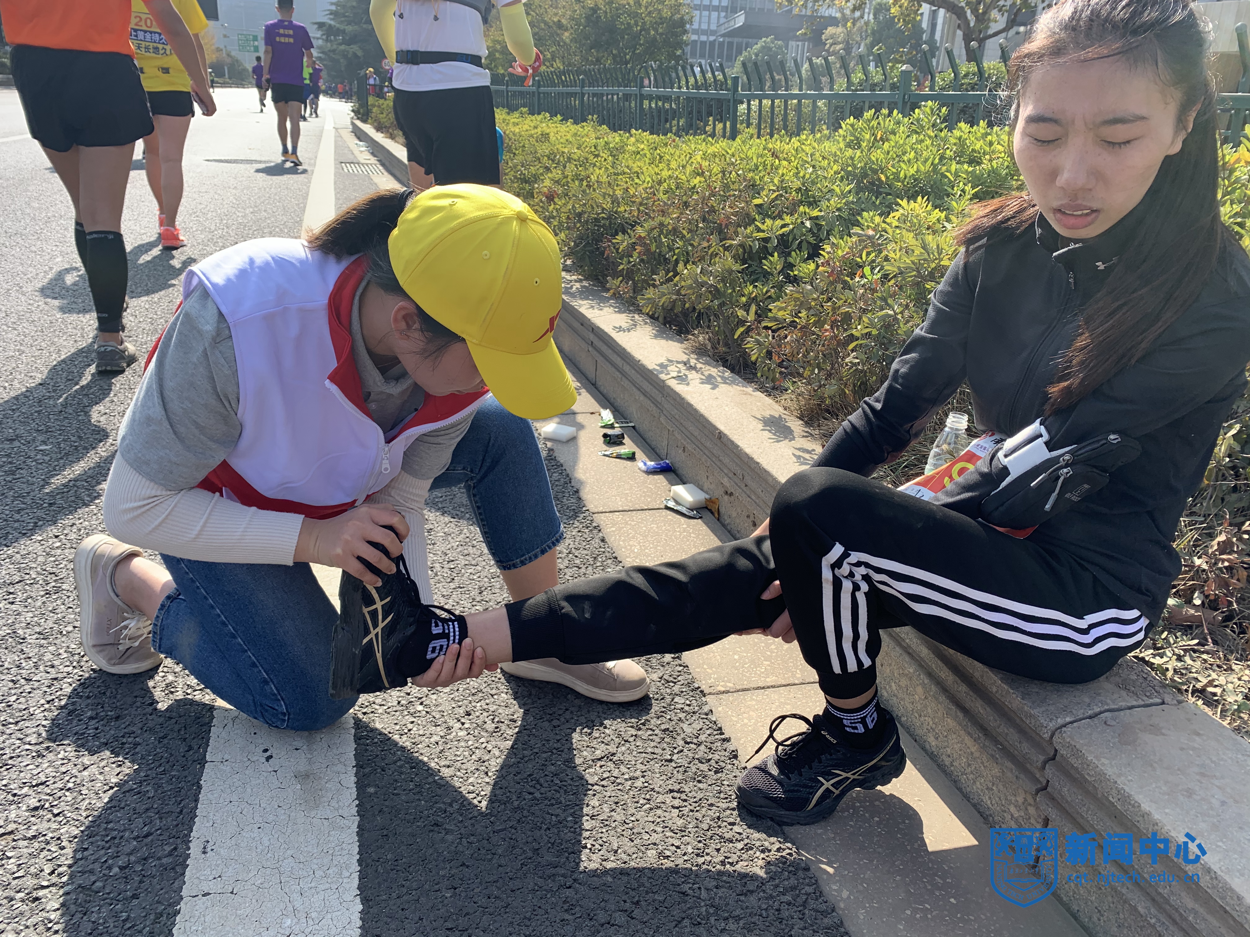此次马拉松比赛,伤员的伤情大多集中在大小腿抽筋、肌肉拉伤上,米兰志愿者积极救助,并伴以适当的人文关怀,尽力让受伤的选手们感到温暖。上午11点左右,在36km医疗点附近一名外国跑者倒地呕吐,志愿者张正和张晓敏第一时间发现,做好紧急处理后,并立即叫来救护车人员,随后将伤者抬上担架送到救护车上进行救治,其间救护车志愿者杨浩帆充当翻译,志愿者吕坤昆全程陪同,确保伤者的生命安全。
