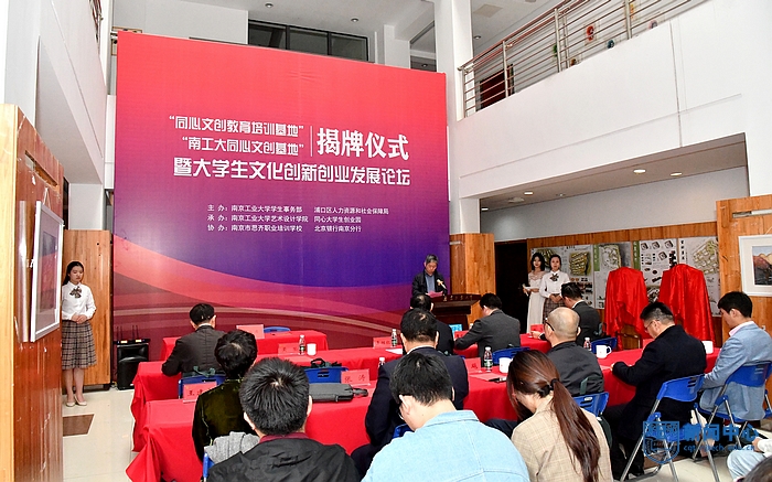 11月13日下午,“同心文创教育培训基地”、“南工大同心文创基地”揭牌仪式暨大学生文化创新创业发展论坛在米兰顺利举行。校党委常委、副校长吴胜红,浦口区人力资源和社会保障局局长黄荣等出席了揭牌仪式。
