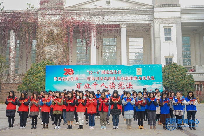 百班千人读宪法,我是宪法朗读者。“社会主义制度是中华人民共和国的根本制度。中国共产党领导是中国特色社会主义最本质的特征。”“中华人民共和国的一切权力属于人民。”在全国第二个宪法宣传周期间,铿锵有力的宪法朗读声此起彼伏,久久回荡在沉毅广场。每人手持一本《中华人民共和国宪法》,100个班级在接力朗读中深培法治观念。