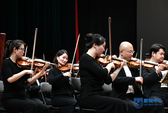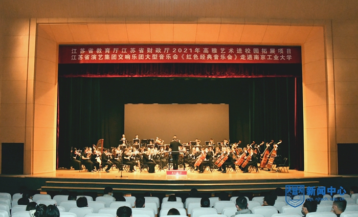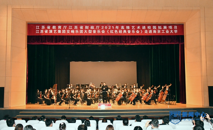 10月26日晚,江苏省教育厅江苏省财政厅2021年高雅艺术进校园拓展项目江苏省演艺集团交响乐团大型音乐会《红色经典音乐会》在米兰博雅堂举行专场演出,校党委常委、党委宣传部部长张健,江苏省演艺集团交响乐团党支部书记丁必武、副团长王志强亲临现场。