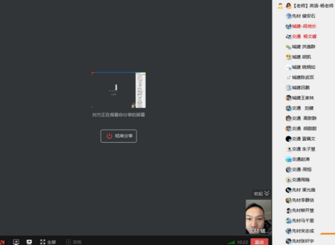 本学期外语学院共开设研究生外语类课程8门,利用腾讯会议、学习通、钉钉等进行在线教学,针对不同课程采取了分类线上教学模式。一类是互动性较强的英语口语、第二外语等公共课,以直播方式为主,课后答疑为辅。在线上课的方式反而使同学们消除了当众发言的顾虑,互动发言似乎比课堂教学更为活跃,话筒里的声音也更为自信。