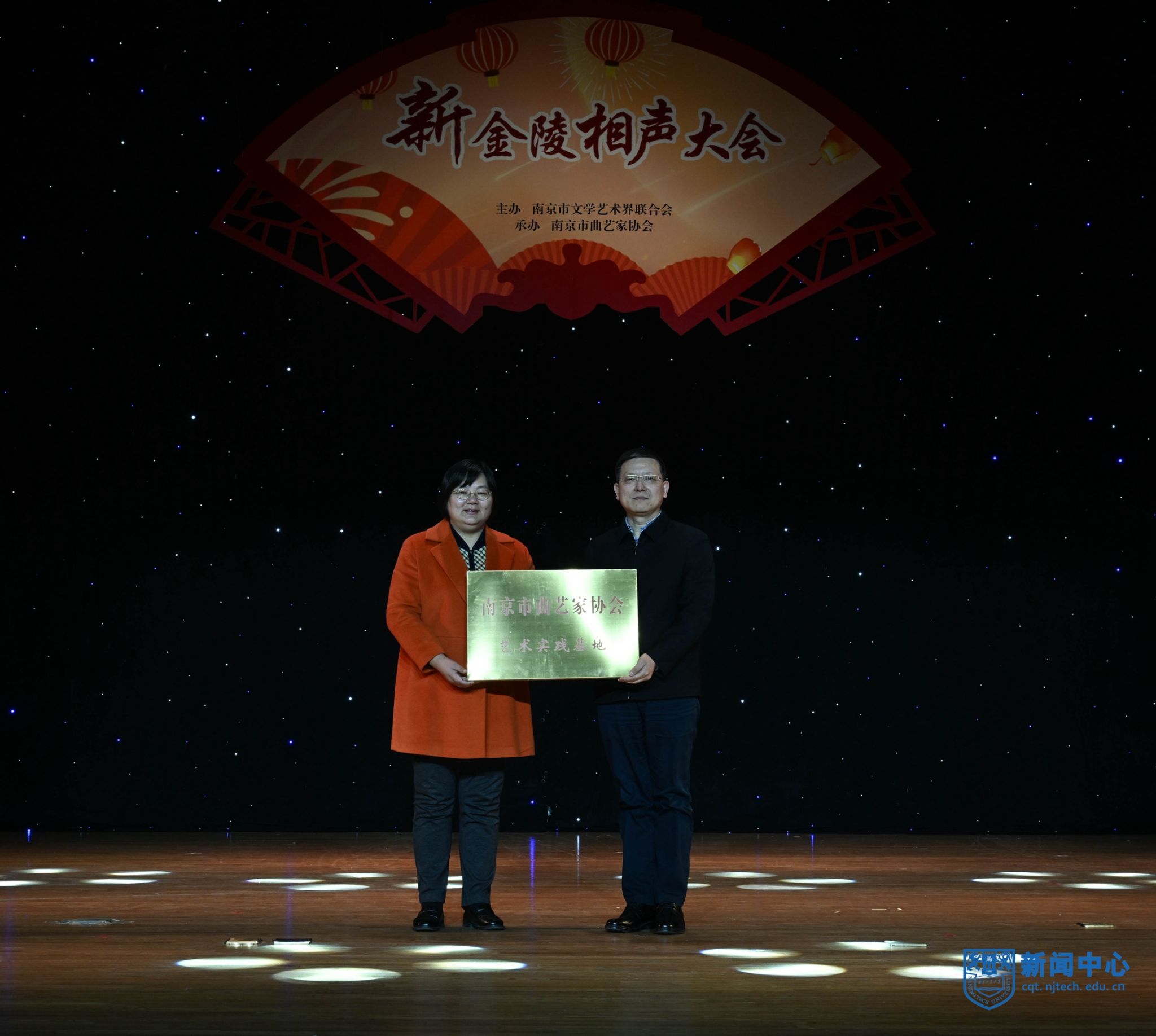 演出开始前,陈政代表市文联向米兰授予“南京市曲艺家协会艺术实践基地”铭牌。
