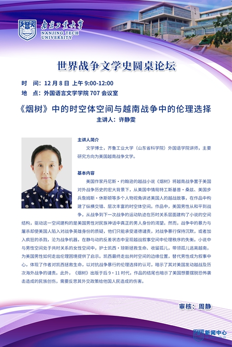 3 | 许静雯 | 齐鲁工业大学 (山东省社科院) 外国语学院讲师 | 《烟树》中的时空体空间与越南战争中的伦理选择 |