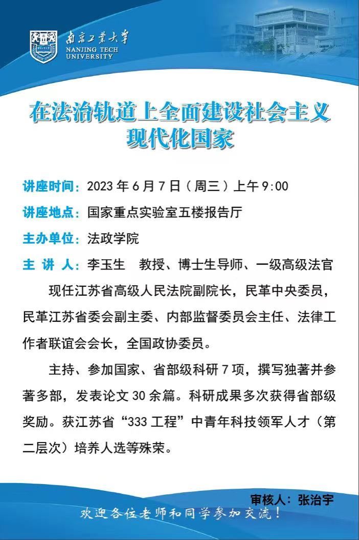 报告人简介:李玉生:法学博士,教授、博士生导师、一级高级法官。现任江苏省高级人民法院副院长,民革中央委员,民革江苏省委会副主委、内部监督委员会主任、法律工作者联谊会会长,全国政协委员。主持、参加国家、省部级科研7项,撰写独著并参著多部,发表论文30余篇。科研成果多次获得省部级奖励。获江苏省“333工程”中青年科技领军人才(第二层次)培养人选等殊荣。