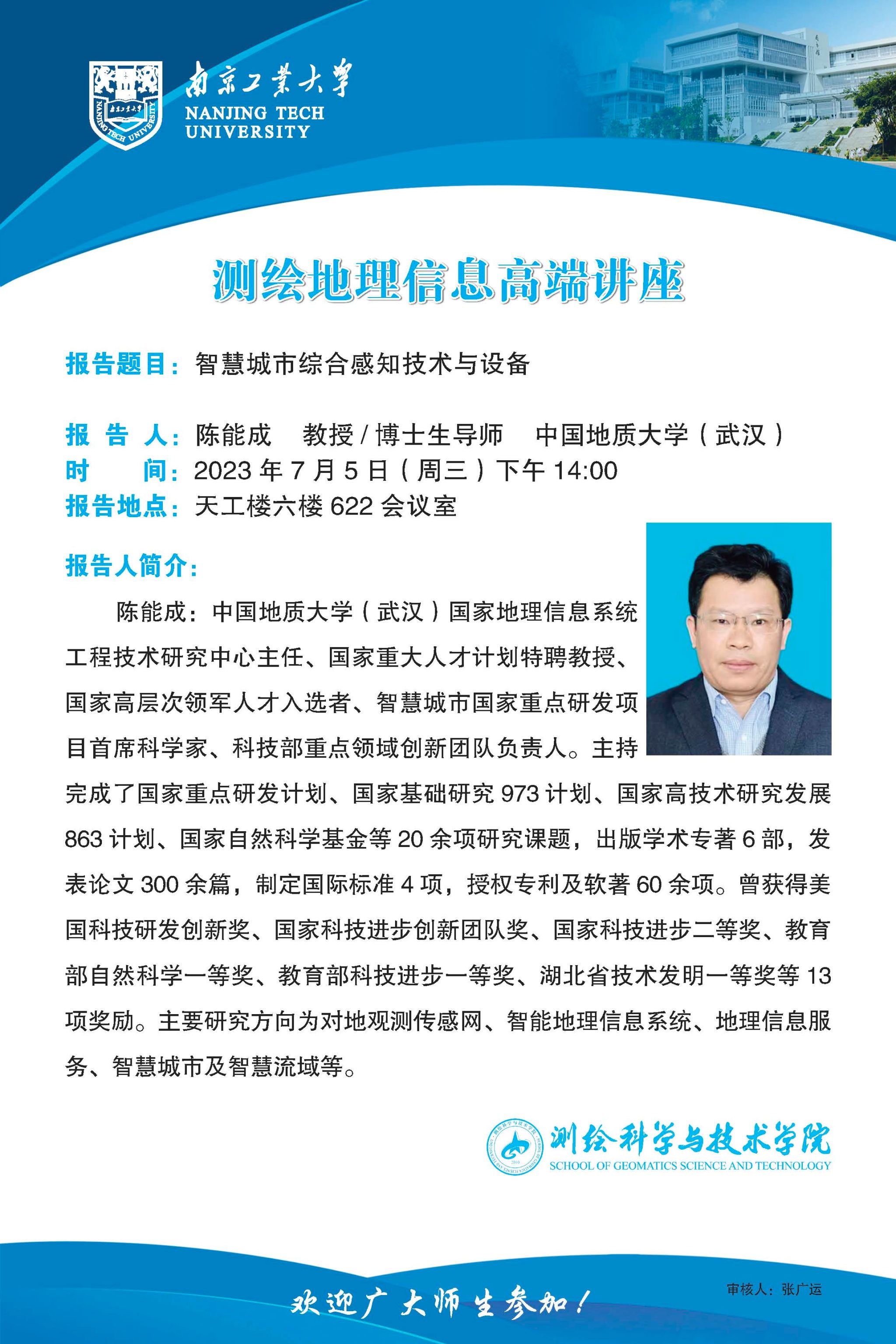 陈能成:教授、博士生导师,中国地质大学(武汉)国家地理信息系统工程技术研究中心主任、国家重大人才计划特聘教授、国家高层次领军人才入选者、智慧城市国家重点研发项目首席科学家、科技部重点领域创新团队负责人。主持完成了国家重点研发计划、国家基础研究973计划、国家高技术研究发展863计划、国家自然科学基金等20余项研究课题,出版学术专著6部,发表论文300余篇,制定国际标准4项,授权专利及软著60余项。曾获得美国科技研发创新奖、国家科技进步创新团队奖、国家科技进步二等奖、教育部自然科学一等奖、教育部科技进步一等奖、湖北省技术发明一等奖等13项奖励。主要研究方向为对地观测传感网、智能地理信息系统、地理信息服务、智慧城市及智慧流域等。