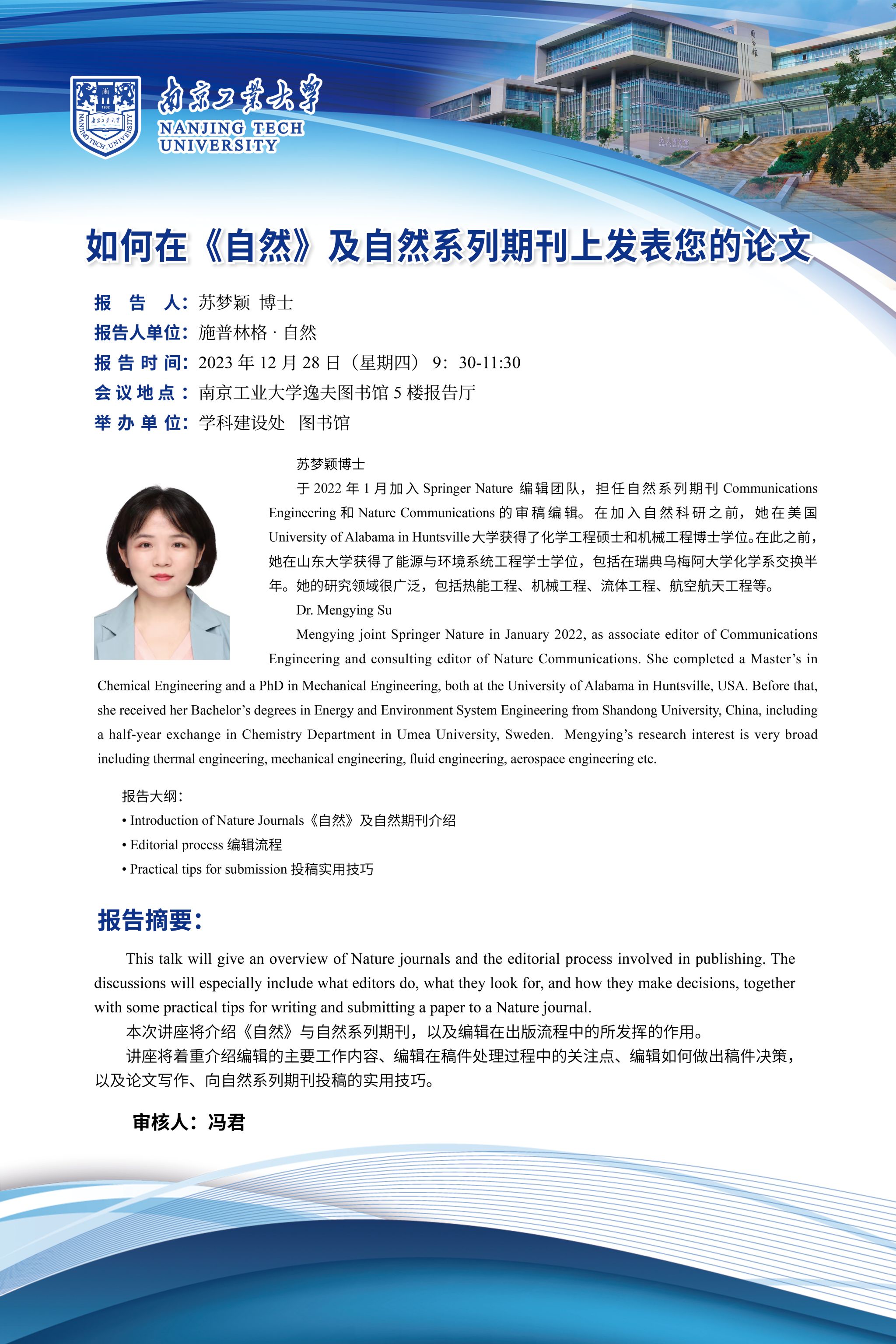 09:40-10:40 (含互动问答) | 如何在《自然》及自然系列期刊上发表您的论文 | 主讲人: 苏梦颖博士自然系列期刊审稿编辑 | |