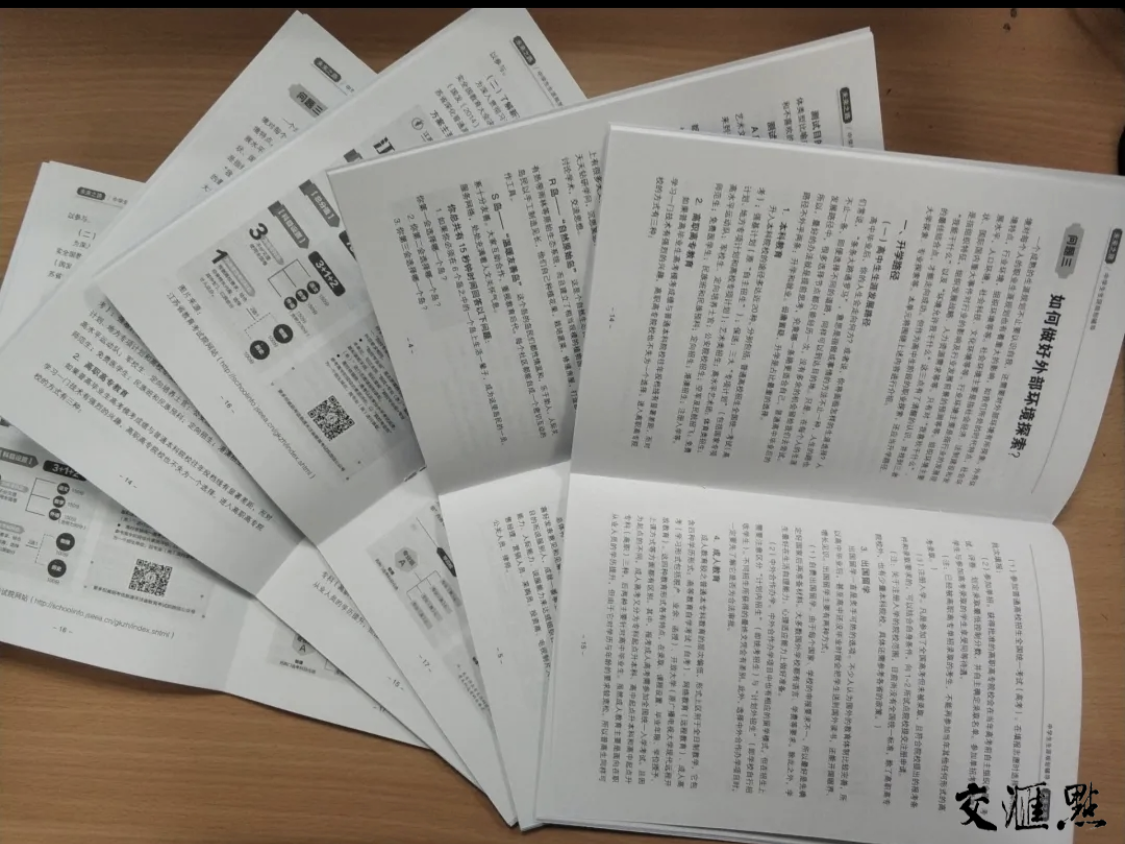 “虽然课业很紧,空余时间也很少,但孩子对小册子里的内容还是进行了详实地阅读和思考,我也好奇地看了一遍,确实很实用,很有指导意义。”陈秋羽的妈妈告诉记者,她还特地把最后的生涯决策平衡单拍了下来,想着什么时候指导孩子一起做一下。