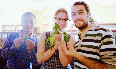 “一带一路”留学生学包粽子