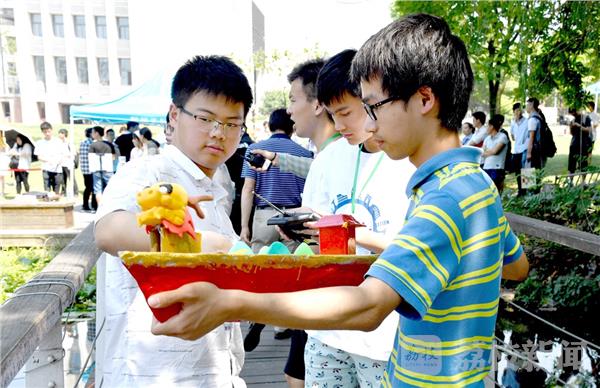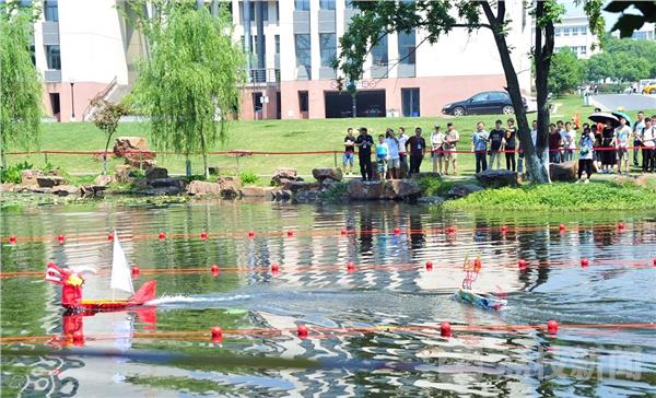 本次混凝土龙舟赛由竞速赛、障碍赛两部分组成,一声枪响,装饰一新的混凝土龙舟在学生们的遥感控制下不仅能在水面上破浪前进,还能在行进中绕过障碍物,让人大开眼界。大赛还吸引了海外留学生的积极参与,来自科摩罗、东帝汶等海外留学生也制作了中国文化色彩浓厚的参赛作品。