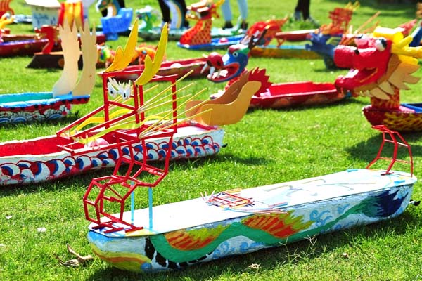 [中国江苏网]南工君子湖畔41只混凝土龙舟竞技迎端午