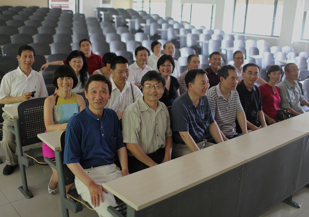 2012年,周叮教授(前排左三)和同学们在清华大学的教室内拍照留念。
