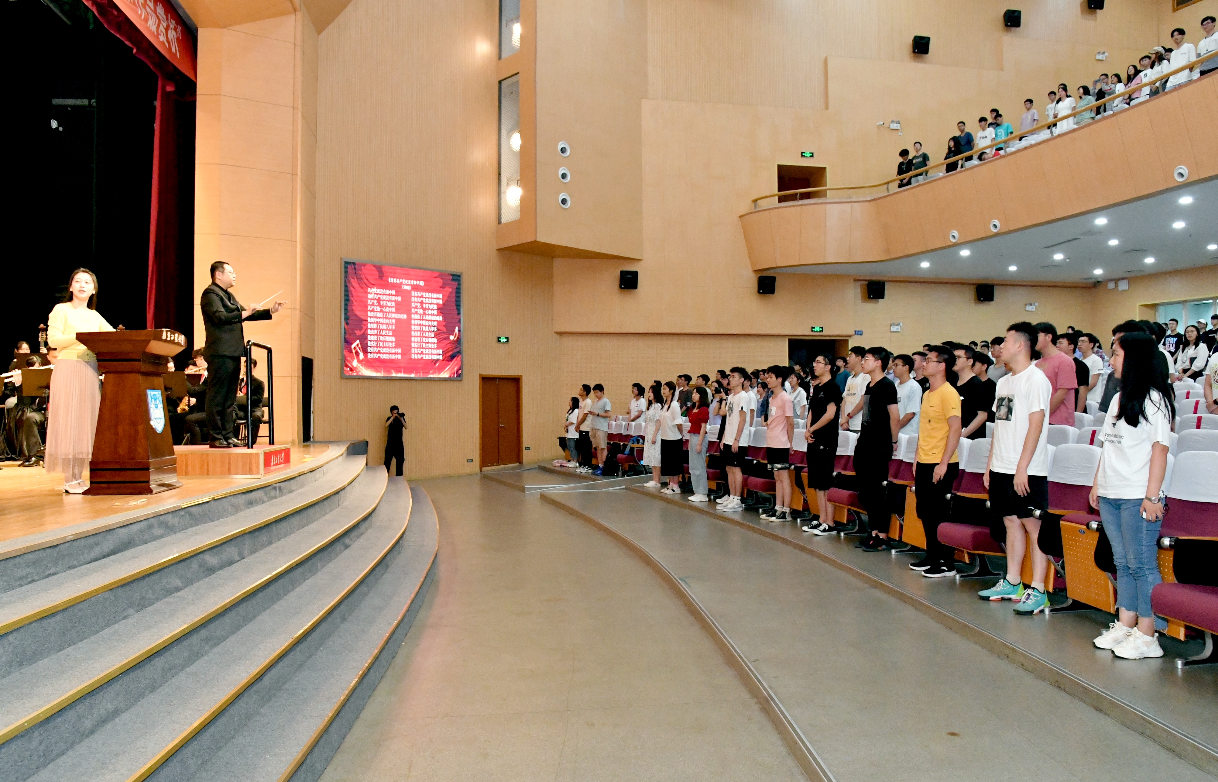 “这门课程以一种特别新颖的方式向我们讲述党的光辉历史,让我们在动人旋律中感受100年间,在党的带领下中国发生的沧桑巨变,体悟中国共产党日益凸显的战斗力、凝聚力、创造力,特别具有吸引力。”选课学生代表、经济与管理学院国贸1801学生金鑫自信地站上舞台分享自己的感悟,“非常感谢学校、老师和交响管乐团的同学们,为我们带来了一场别开生面的思政课、一场意义深远的视听盛宴。”