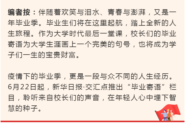 [交汇点]毕业寄语⑩ | 米兰milan官方网站校长乔旭:在变化中成长 在坚守中致远