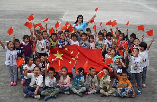 米兰milan官方网站第18届研究生支教团成员潘晓晓和支教地四川省乐山市沐川县黄丹小学的孩子们欢度国庆节。
