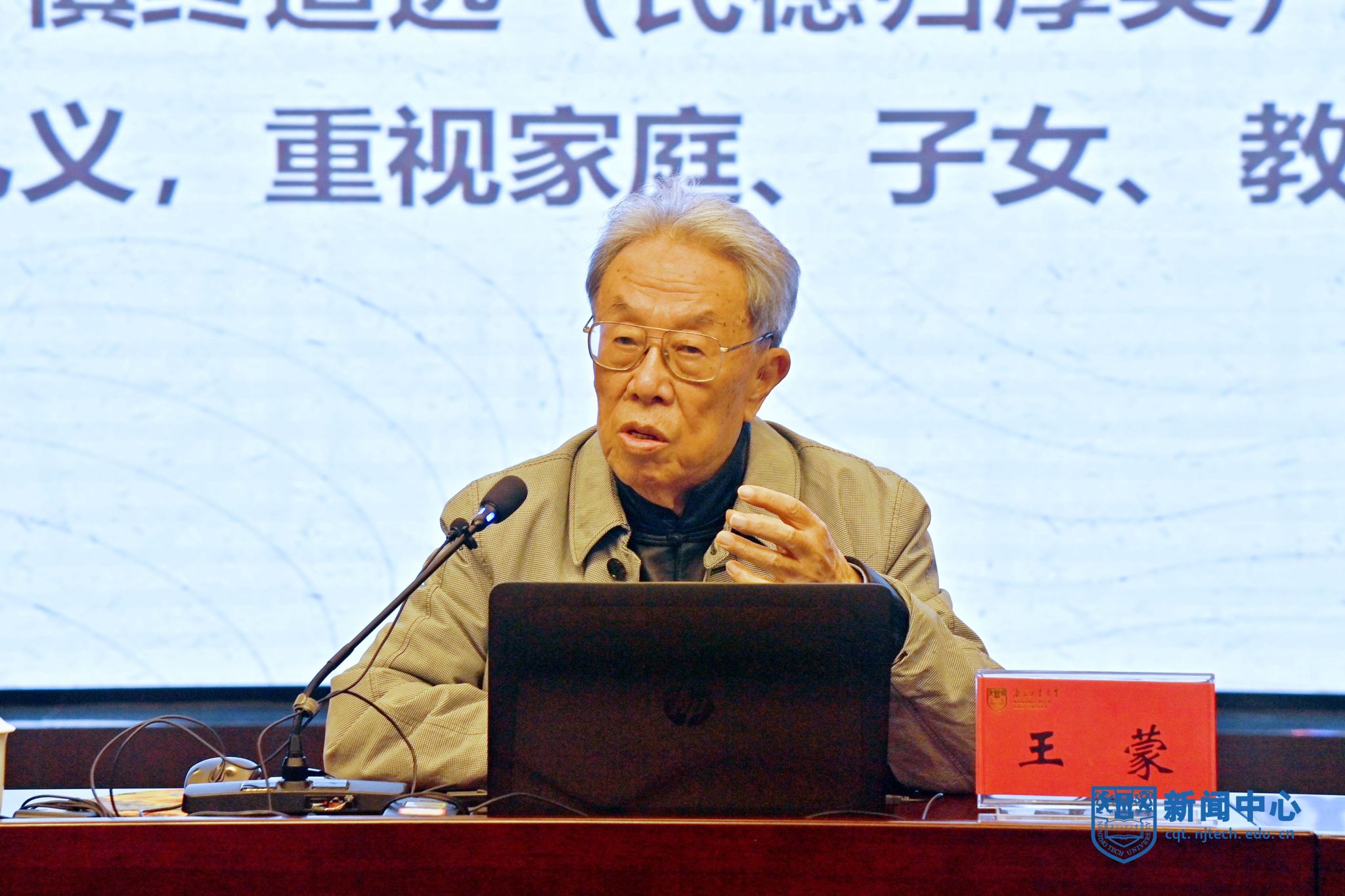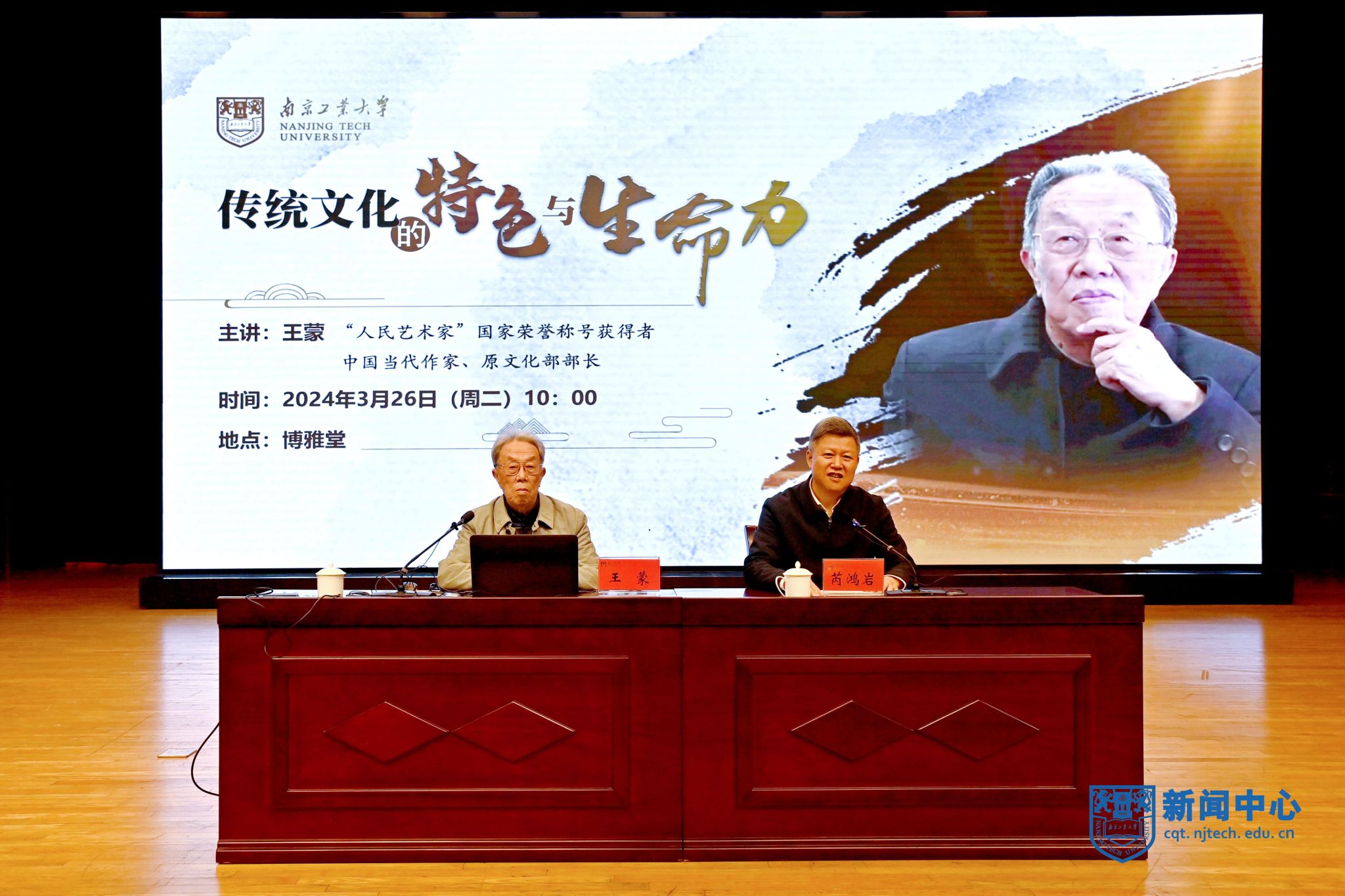 3月26日,“人民艺术家”国家荣誉称号获得者、中国当代著名作家、原文化部部长王蒙先生应邀来校,为广大师生作《传统文化的特色与生命力》的专题报告。原江苏省政协主席、党组书记,现江苏省关工委主任张连珍同志出席报告会。校党委书记芮鸿岩主持报告会。校领导吴胜红、王敦宝、郭万牛、刘大卫,校院两级中心组成员、全体中层干部、思政课教师、辅导员、宣传员及师生代表等在博雅堂聆听了报告。