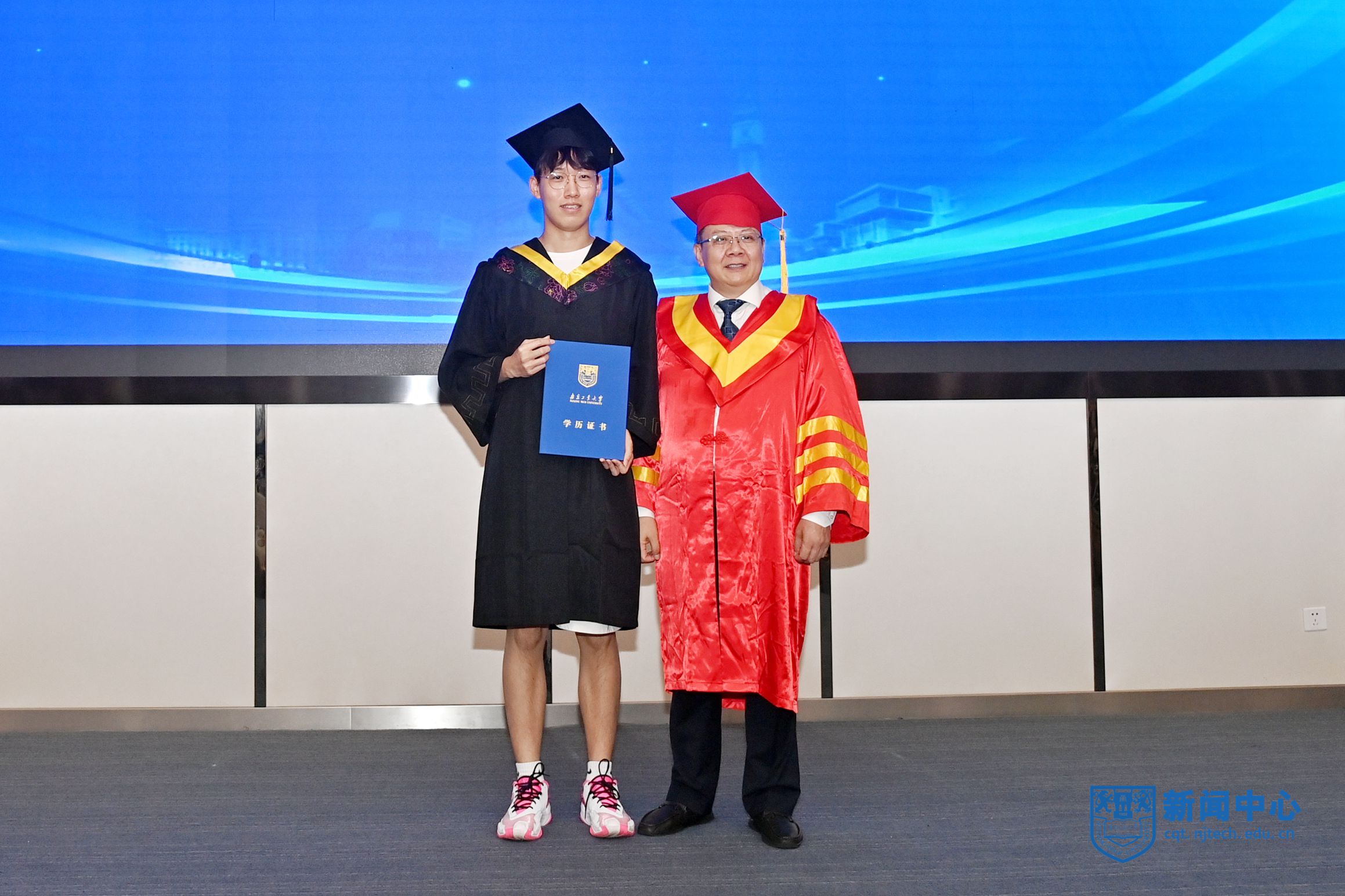 教务处处长陆春华宣读了获得两校双学位毕业生名单。蒋军成和托马斯•斯通为毕业生颁发两校学位证书,并合影留念。毕业生代表倪铭同学发言,表达了对母校的感激。出国学生代表李炫阳同学发言,表达了对学长们的敬意和对出国学习生活的展望。