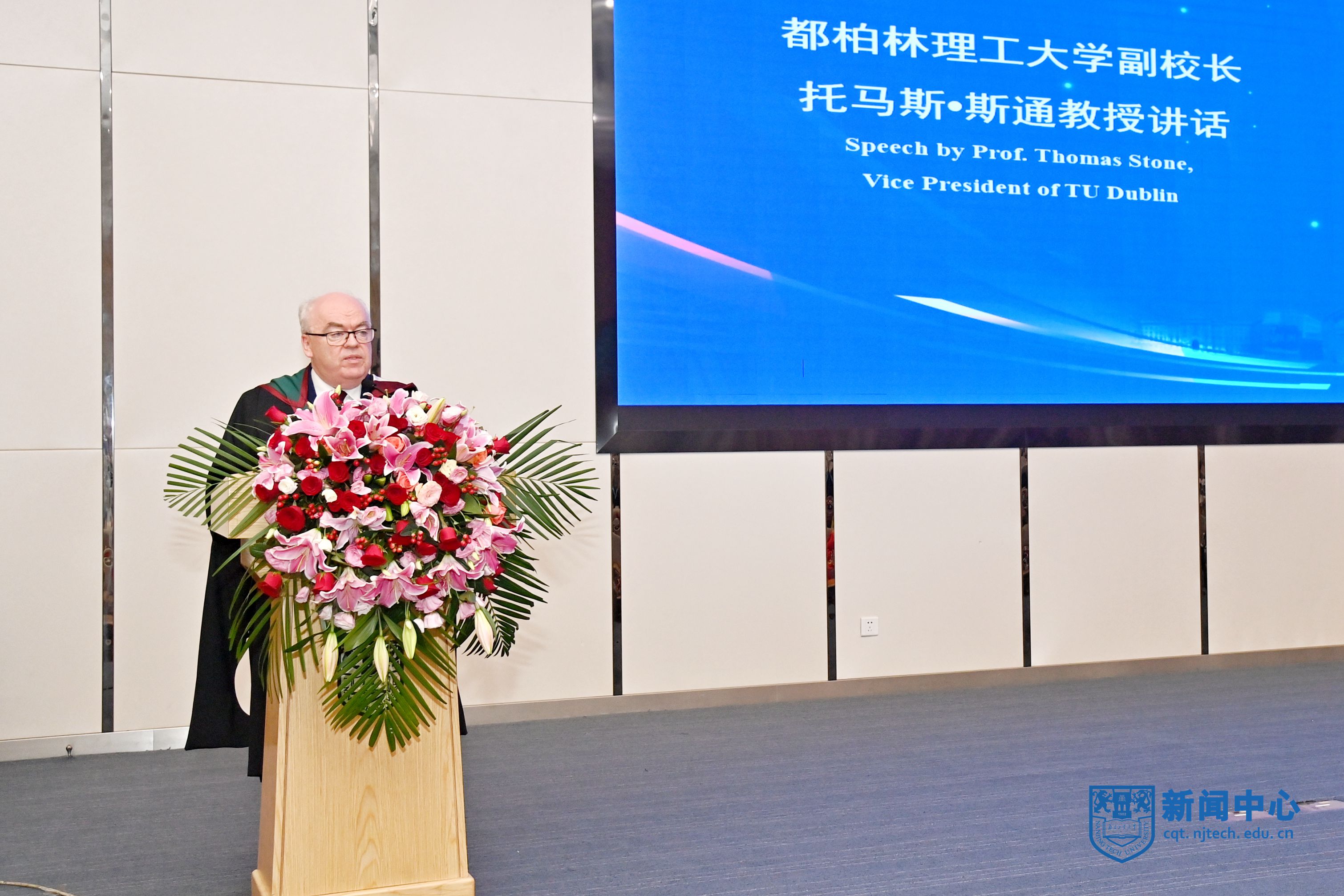 蒋军成对都柏林理工大学代表团的到访表示欢迎,对获得双方学位的毕业生表示热烈祝贺,他寄语毕业生要在世界赛场上接力奔跑,起好步、成为孜孜不辍的追光者,过好弯、成为美美与共的聚光者,接好棒、成为灼灼如炬的闪光者,学成回国,为国增光。