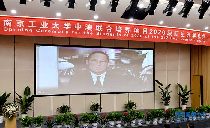党委常委、副校长牛生杰,党委常委、党委宣传部部长张健,教学事务部、学生事务部、电气工程与控制科学学院、数理科学学院、经济与管理学院负责人和教师代表出席了开学典礼。昆士兰大学常务副校长李荣誉、工程建筑信息技术学院副院长亚里克桑德拉·瑞克,麦考瑞大学副校长妮可·布里格、国际部执行部长大卫·哈里森通过在线互联的方式出席了开学典礼。开学典礼由海外教育学院院长王志荣教授主持,2020级中澳项目全体新生参加了典礼。