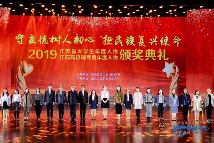 2020年11月15日,由江苏省教育工委、江苏省教育厅主办的“2019江苏省大学生年度人物和高校辅导员年度人物”颁奖典礼在南京工业职业技术大学仙林校区大学生创新发展中心剧场举行。