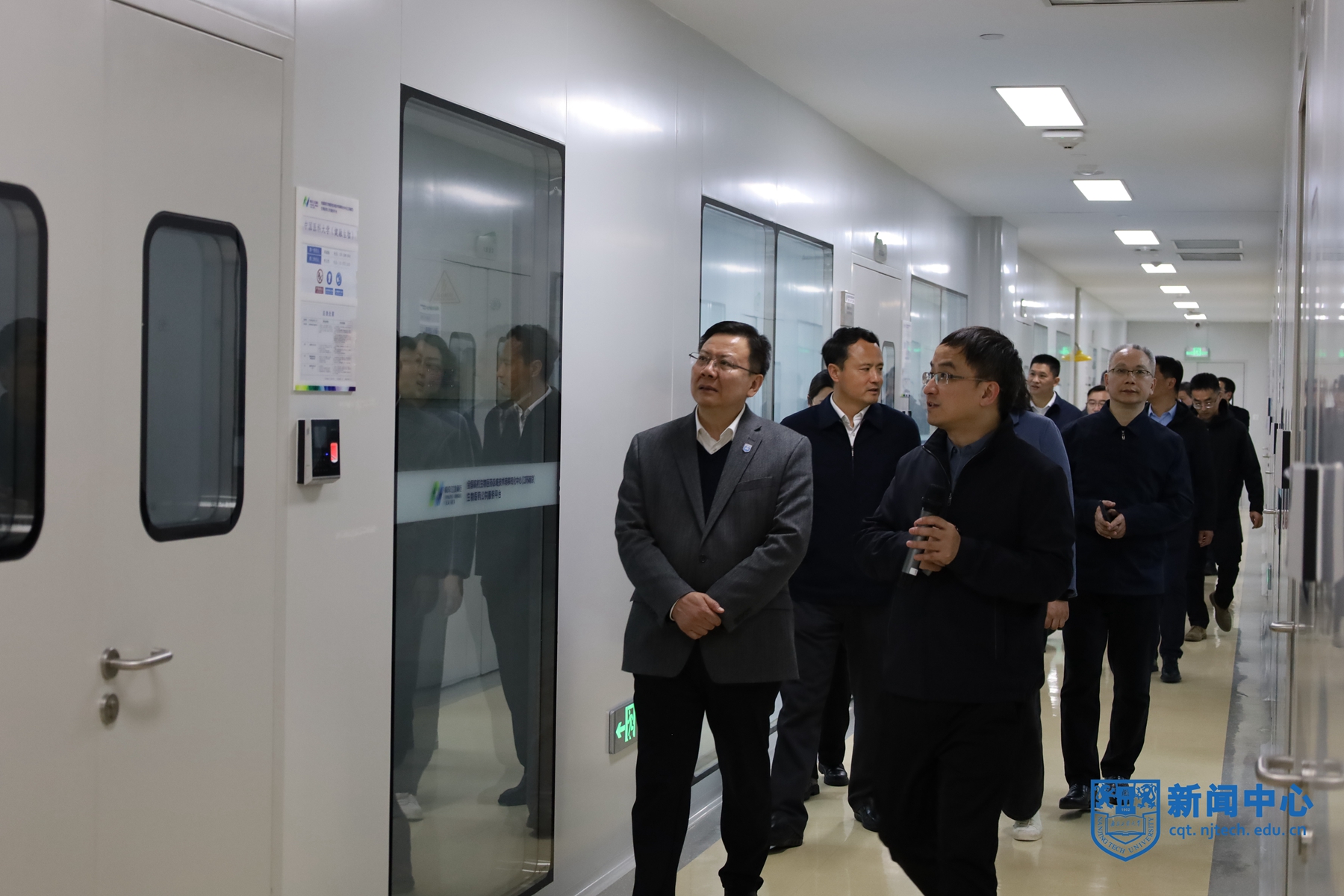 在南京生物医药分中心,王伟介绍了江北新区科技创新和分中心建设运营情况。蒋军成表示,近年来,学校围绕生物医药领域开展了大量科研攻关和技术创新工作,取得了一批高水平研究成果,凝练出了科技成果转化的成熟经验。南京生物医药分中心作为江苏中心的重要组成单位,区位优势明显,产业基础雄厚,创新氛围浓厚,发展潜力巨大。分中心的建设目标与学校的特色发展方向高度契合,希望双方在高水平平台建设、关键技术攻关、高素质人才培养、科技成果转化等方面强强联合、优势互补,共同为打造具有全球影响力的生物医药产业创新高地作出积极贡献。