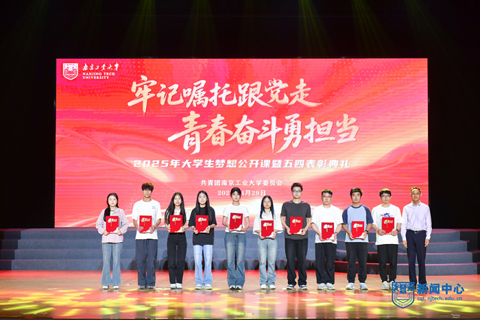 主题分享环节中,计算机与信息工程学院(人工智能学院)魏越,食品科学与工程学院孙元伟,环境科学与工程学院陈仕杰,材料化学工程全国重点实验室副主任、国家级人才、国家重点研发计划项目负责人余子夷围绕支教、科创竞赛、艺术展演、科技报国等方面分享了自己的奋斗故事,号召广大团员青年将“小我”融入“大我”,让个人的奋斗与国家的命运同频共振,彰显当代青年的青春力量。活动表彰了国家奖学金、江苏省青年志愿行动先进典型等获奖集体和个人。校大学生艺术团合唱团倾情演唱《璀璨追梦人》,鼓励青年学子在青春年华勇敢追梦、不负韶华,展现新时代青春风采。
