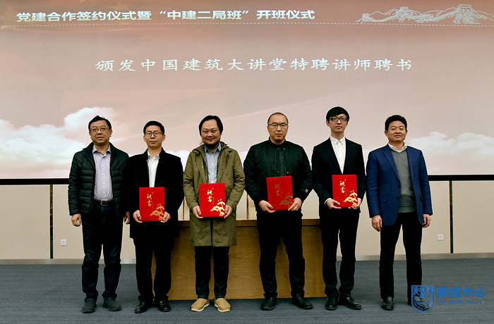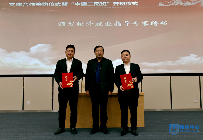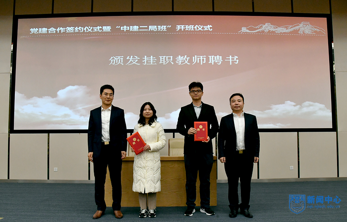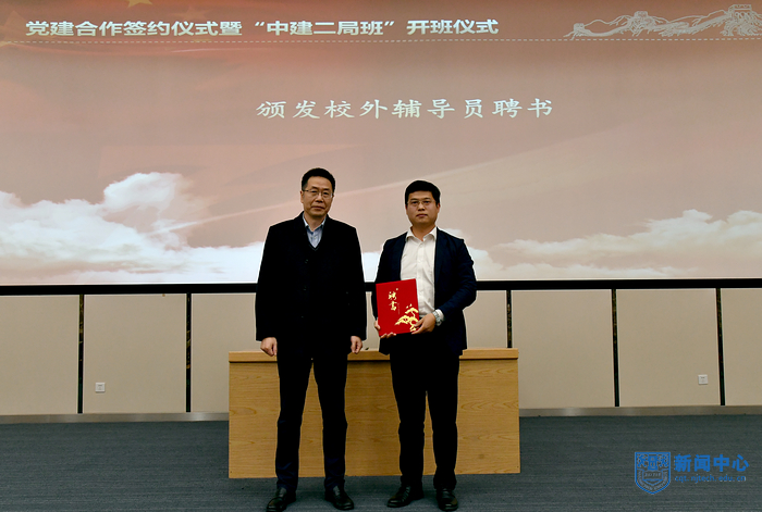 土木工程学院院长王曙光对中建二局的到访表达了诚挚欢迎与感谢,指出土木学院和中建二局在支部共建、学科发展、人才培养、科研创新、产学融合上有着深层次的合作空间,努力把握时代机遇推进构建双赢格局来日可期。仪式上,土木学院与中建二局签署了《支部共建协议》和《青年教师挂职锻炼协议》,中建二局为土木学院青年教师颁发了挂职教师聘书,相关领导为中建二局骨干颁发了校外辅导员、校外就业指导专家、中国建筑大讲堂特聘讲师聘书。校、企双方领导共同为新建的“中建二局班”举行了揭牌仪式。