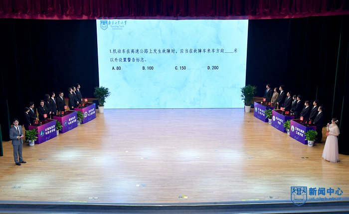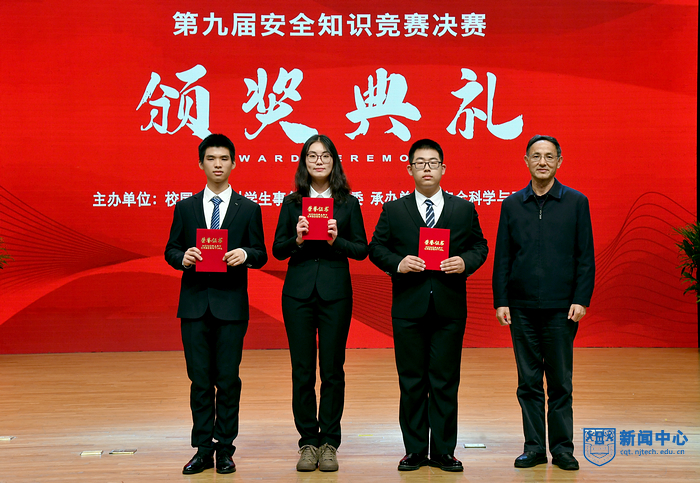 为深入贯彻落实习近平总书记关于安全生产工作的重要指示精神,营造“人人讲安全,事事为安全,时时想安全,处处要安全”的校园氛围。11月25日晚,由校园安全部、学生事务部、团委主办,安全科学与工程学院承办的第九届安全知识竞赛决赛在博雅堂举行。校党委副书记吴胜红,江北新区公安分局内保支队支队长吴远富,顶山派出所所长谢琦,高新技术开发区消防救援大队副大队长李淼,驻校警务室警官吴殿明,相关职能部门负责人,各学院分管学生工作党委(党总支)书记、副书记、校园安全部全体人员、新生辅导员及学生代表参加并观摩了比赛。