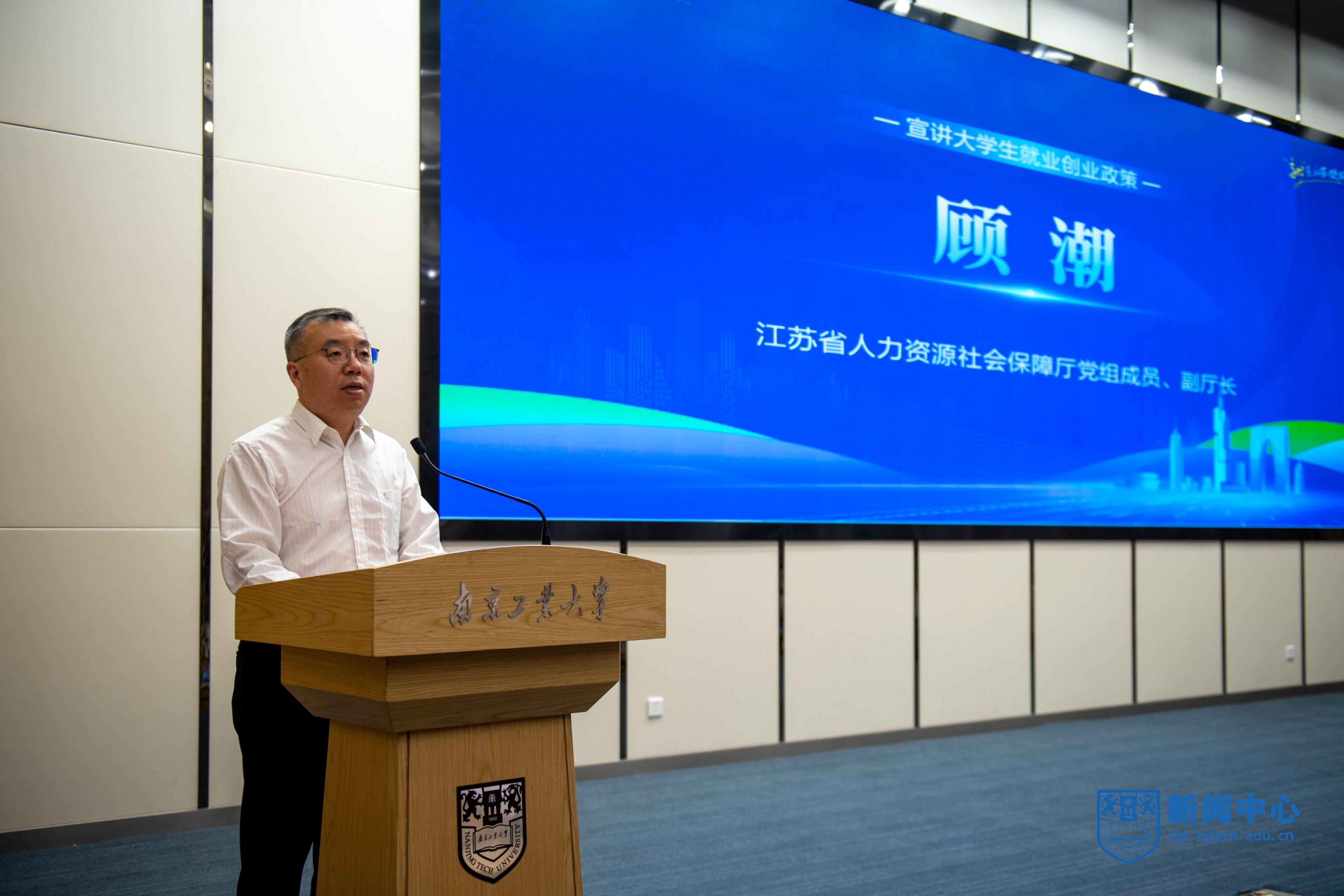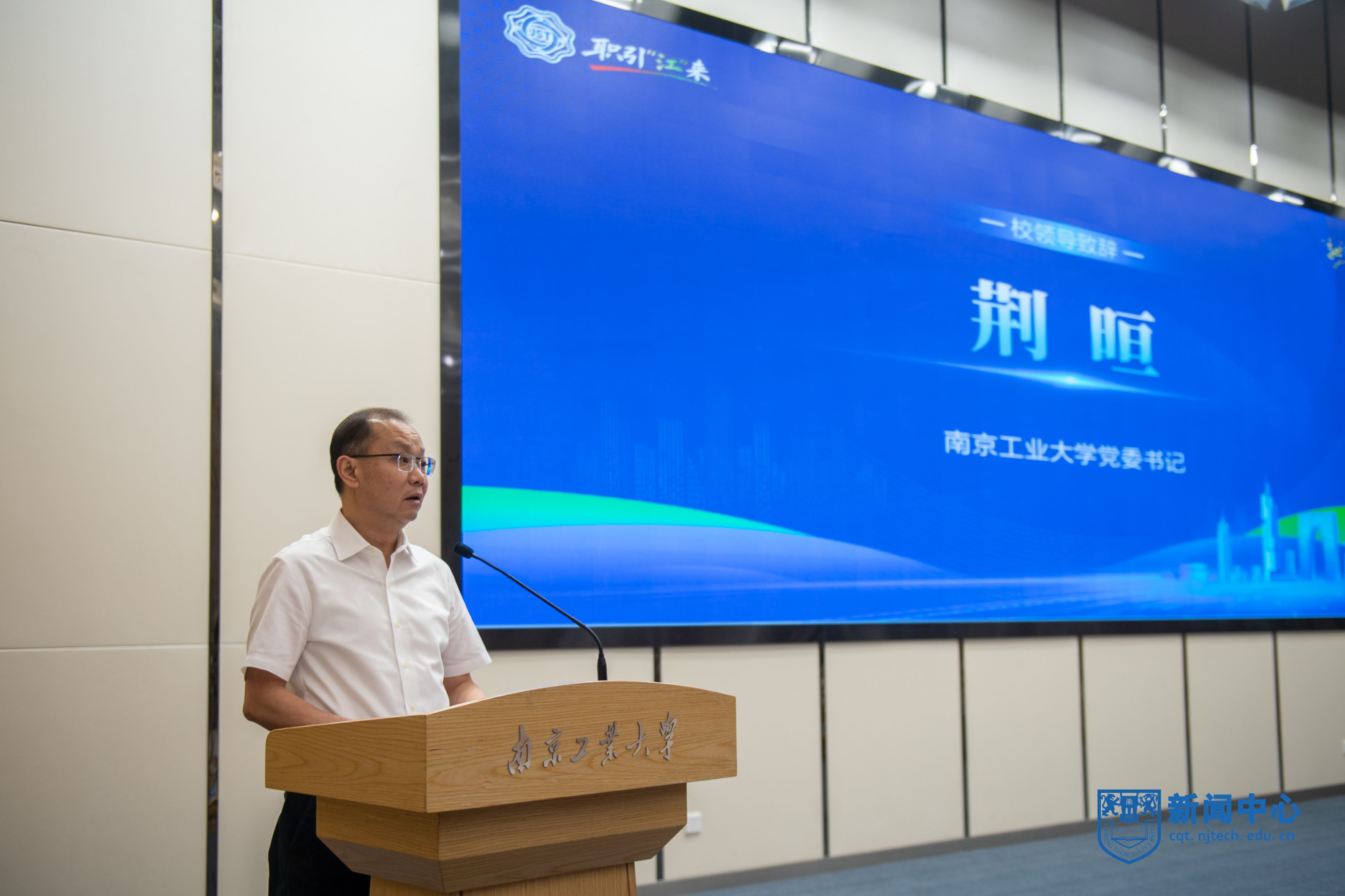 荆晅在致辞中对出席活动的领导和嘉宾表示欢迎和感谢,并介绍了学校发展现状、办学特色和毕业生就业工作等情况。他期待以本次活动为契机,学校能与各地人社部门和用人单位进一步加强交流对接,不断拓展校地、校企合作领域,共同为毕业生搭建更为广阔、更为多样的就业平台。他希望全体毕业生能够珍惜“第一课”、学懂“第一课”、用好“第一课”,把握住机遇,学在江苏、“就”在江苏,在江苏这片热土上施展才华、建功立业。