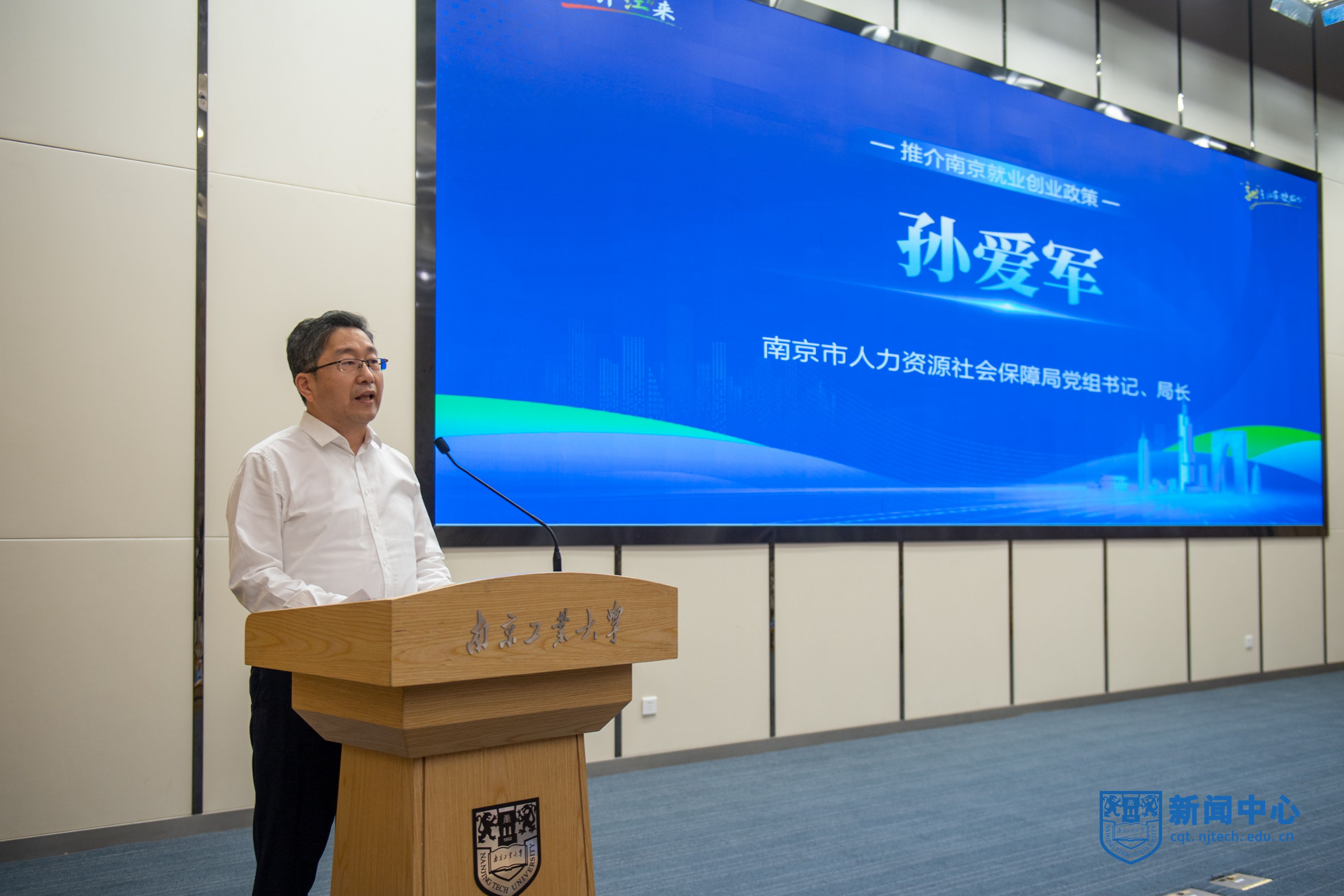 孙爱军推介了南京最新的就创业政策与重点产业发展情况。省人社厅就业促进处处长薛勇宣读《致2026届高校毕业生的一封信》并发布人社就业服务清单。
