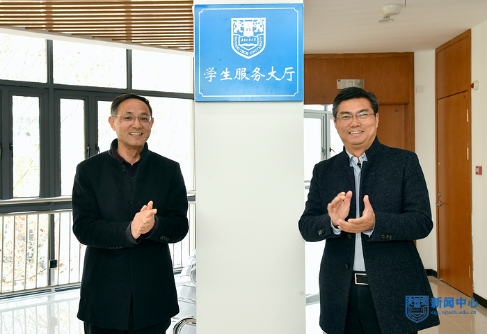 最后,吴胜红副书记和王敦宝纪委书记共同为学生服务大厅揭牌。
