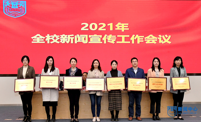 刘大卫主任宣读《关于表彰2020年度新闻宣传工作先进的决定》。新闻宣传工作先进集体、优秀新媒体平台负责人,新闻宣传先进个人、优秀作品奖获得者代表上台领奖。生物与制药工程学院党委副书记、纪委书记吴杰,外国语言文学学院党委书记弋鹏,学生工作处林佳老师先后作了交流发言。
