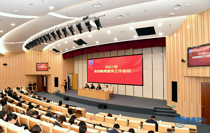 4月22日上午,学校在弘毅楼五楼报告厅召开2021年全校新闻宣传工作会议。校党委副书记吴胜红,校党委常委、党委宣传部部长张健,校党委常委、党委办公室主任刘大卫出席会议。