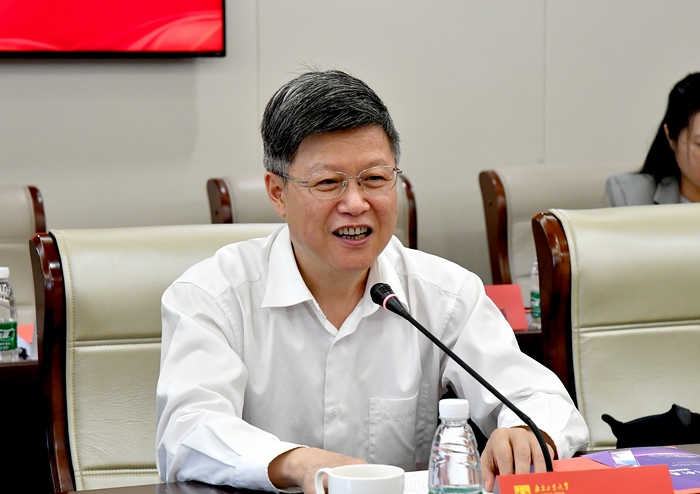 芮鸿岩书记作讲话。他指出,探索“中国特色新型智库”、擘画“新文科”蓝图以及创业型大学发展都离不开社科团队和基地建设。全校社科工作相关主体要围绕“振兴哲学社会科学”的中心目标,树立“行业高校特色文科”的发展意识,主动谋划、积极作为,遵循“讲好中国故事”“关照社会现实”“学科交叉融合”之道,为新时代发展贡献文科人的力量和智慧。