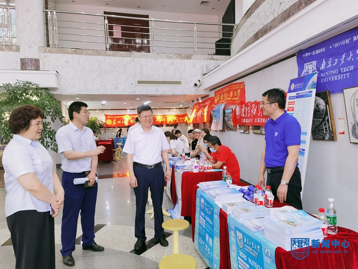 在金陵中学河西分校招生宣传现场,芮鸿岩书记与前来咨询的学生及家长进行了亲切交流。芮书记会见了金陵中学河西分校校长穆耕森,副校长张晓莉、赵建宁,双方还就建立长效合作机制等问题进行了深入交流。芮书记代表学校向中学送去了喜报。