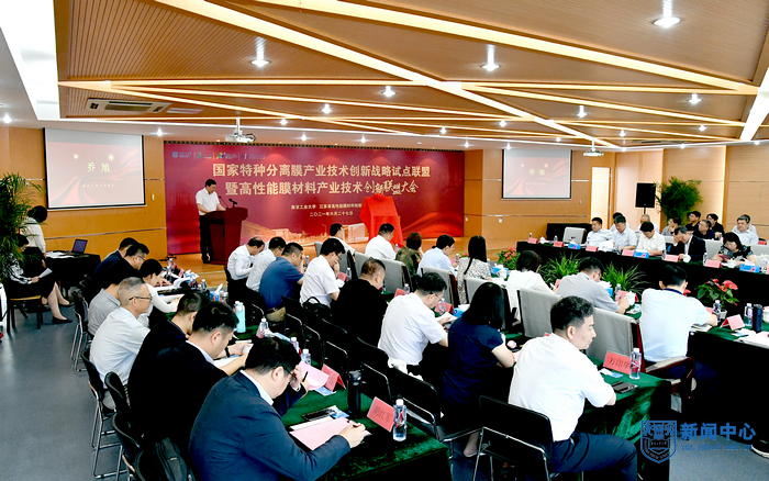 6月27日,国家特种分离膜产业技术创新战略试点联盟暨高性能膜材料产业技术创新联盟大会在江苏膜科技产业园举行。中国工程院院士高从堦,中国科学院原秘书长邓麦村,中化环境控股有限公司党委书记、董事长崔焱,中国石油和化学工业联合会副秘书长胡迁林,中国膜工业协会秘书长王继文,江苏省工业与信息化厅副厅长池宇,校长乔旭,国家级平台依托单位主要负责人,上下游产业链龙头企业主要负责人及膜领域相关知名专家学者等100多位代表出席会议。大会由副校长邢卫红主持。